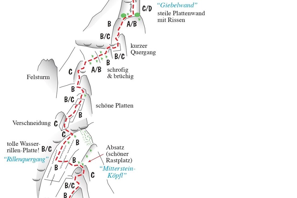 - Klettersteig-Touren sind kraftraubend und erfordern Kondition, Schwindelfreiheit und Trittsicherheit.
