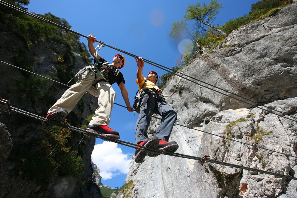* Klettersteig-Touren sind kraftraubend und erfordern Kondition, Schwindelfreiheit und Trittsicherheit.