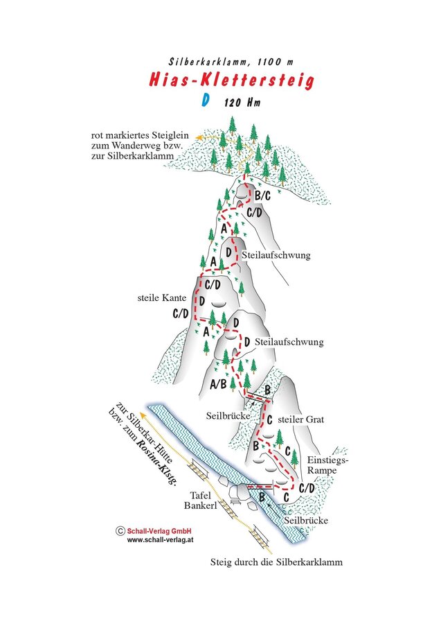 Anmerkung: Die Silberkarklamm ist in privatem Besitz der Famillie Erlbacher. Die Klammerhaltungsgebühr fließt zu 100% in die Erhaltung des Klammsteiges.
