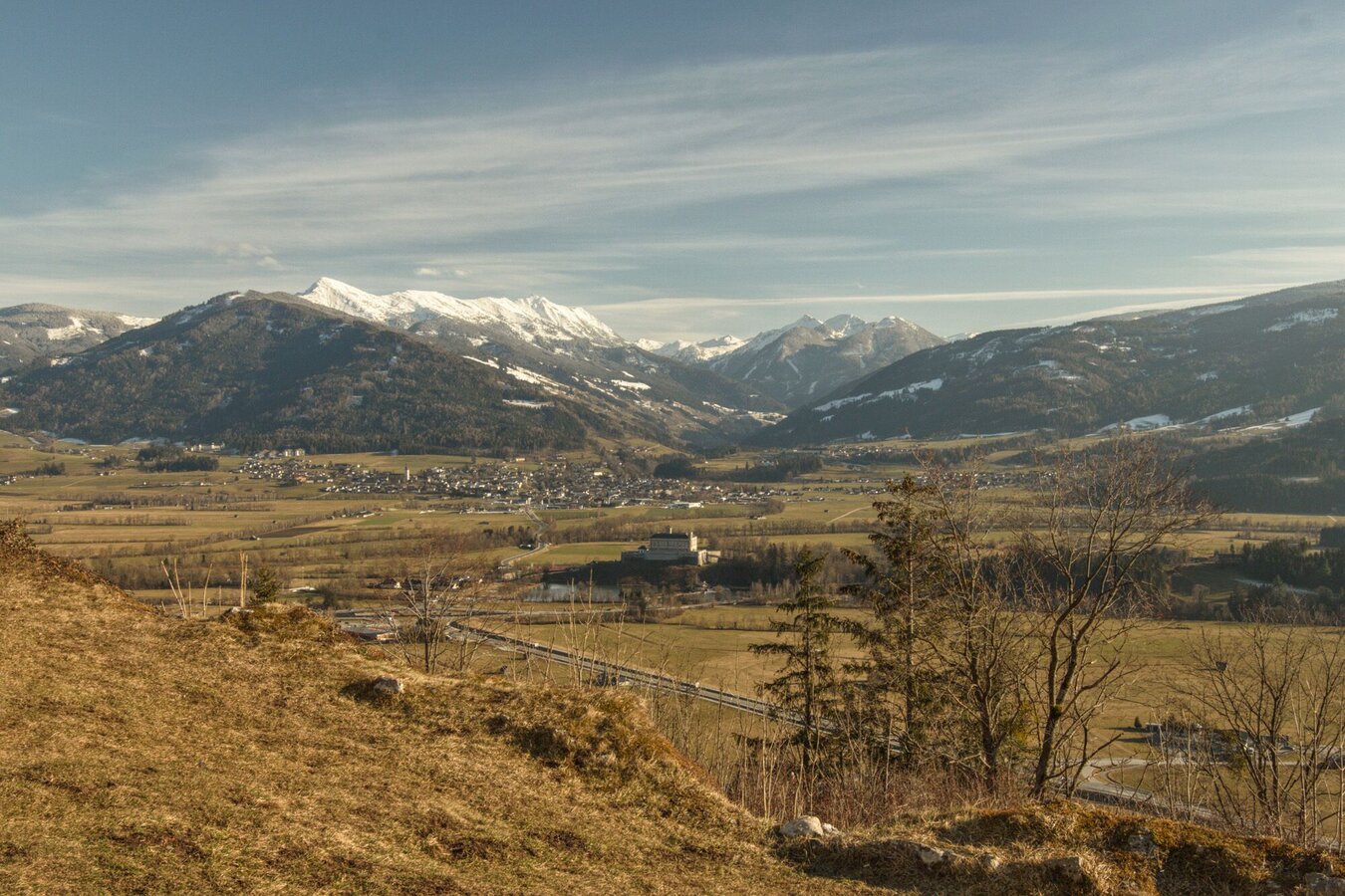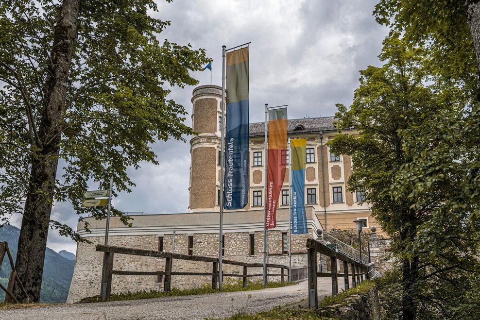 Auf diesem gelangst du hinauf in die Ortschaft Pürgg. Hier lohnt es sich, die Pfarrkirche St. Georg und den zugehörigen Friedhof anzuschauen. Der Blick hinunter zum Schloss, auf den Ennsboden und nach Westen zum Grimming ist ein beeindruckender Anblick. Vorbei am Gasthaus Krenn und der Johanneskapelle wanderst du von Pürgg nun wieder hinab Richtung Unterburg. Ein Stückchen Richtung Stainach und dann über den Schranz-Hof geht es zurück hinüber nach Trautenfels zu Deinem Ausgangspunkt.