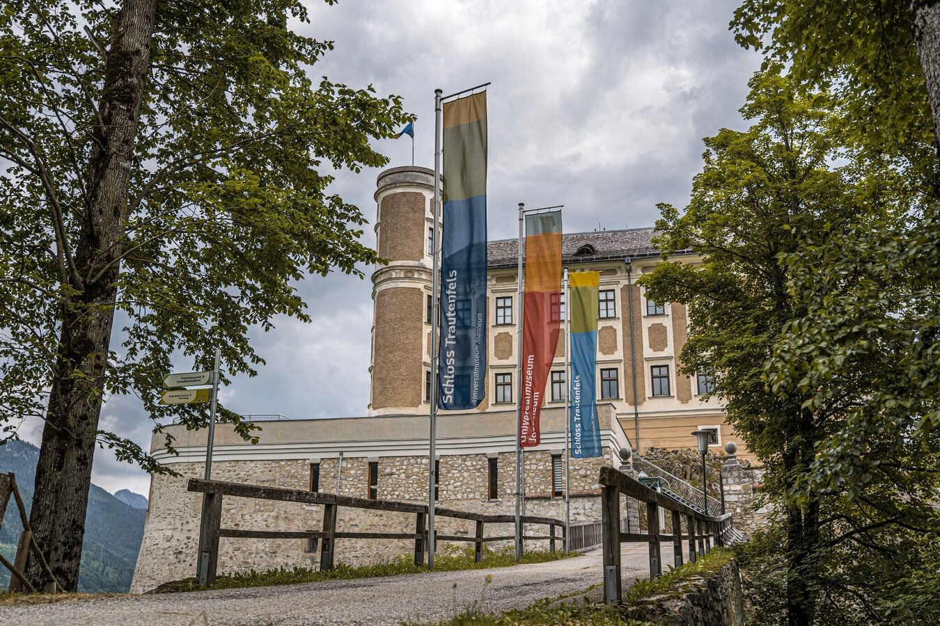 Du startest deine Tour beim Bahnhof Trautenfels bzw. auf dem nebenliegenden Parkplatz. Von dort wanderst du hinauf zum Schloss Trautenfels. Am dortigen Wanderportal folgst du der Beschilderung Richtung Kirchenruine Neuhaus und Grimminghütte. Du wanderst vorbei am Bioinstitut Raumberg-Gumpenstein und an der Kirchenruine Neuhaus. Vor dir immer im Blick: die mächtige Erscheinung des Grimming. Am Wegkreuz kurz nach der Kirchenruine gehst du nach rechts und folgst dem markierten Weg nach Untergrimming. Du erreichst den kleinen Ort und gehst an der Hauptstraße nach links bis rechts der Kapuzinersteig abzweigt.