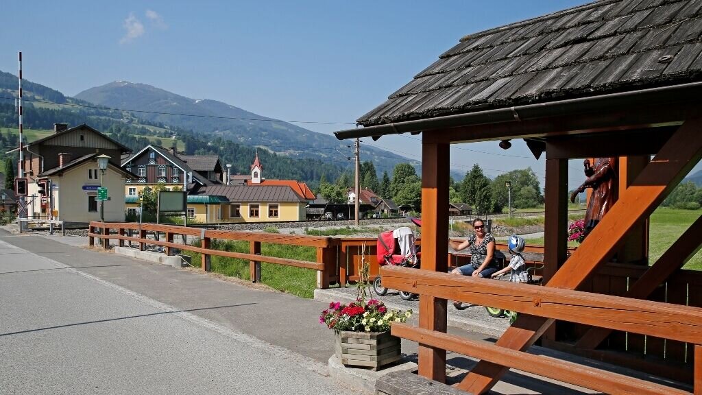 Unsere Wanderung startet in Aich beim Dorfplatz. Wir starten Richtung Assach und passieren die Ennsbrücke. Bei der Kreuzung "Miller" biegen wir links (in westliche Richtung) ab und folgen der Straße ins sogenannte Langtrum (Blick auf Freizeitseeanlage Aich). Beim Arnoldhof nehmen wir die linke Wegabzweigung und folgen der Langtrumstraße. Weiter geht es bis zum Parkplatz des Single Tracks. Dort führt uns ein Waldweg in nördliche Richtung. Wir gehen durch den Wald entlang des Gradenbachs bis zum Wegkreuz Sonnberg. Dort gehen wir über die Straße in den nächsten Waldweg. Von dort führt uns der Weg in westliche Richtung über eine kleine Holzbrücke. Von dort aus geht es weiter Richtung Knerzlweg. Haben wir diesen erreicht folgen wir dem Weg bis zur Kreuzung Sonnberg. (Dort befindet sich die Abzweigung zur Weißenbacher Freiluft-Kneippanlage) Von dieser Kreuzung verläuft der Rückweg Richtung Aich in südwestliche Richtung vorbei am Bundesforstgarten.