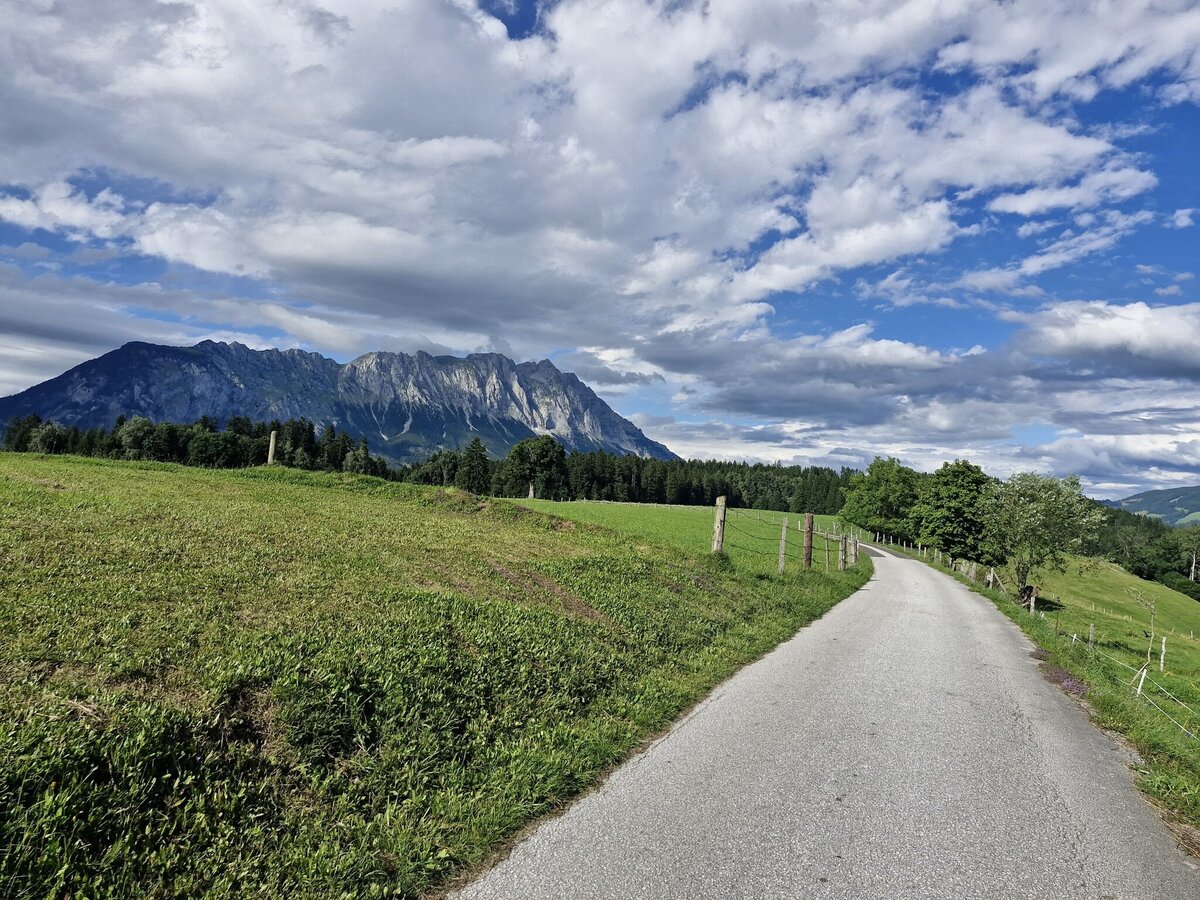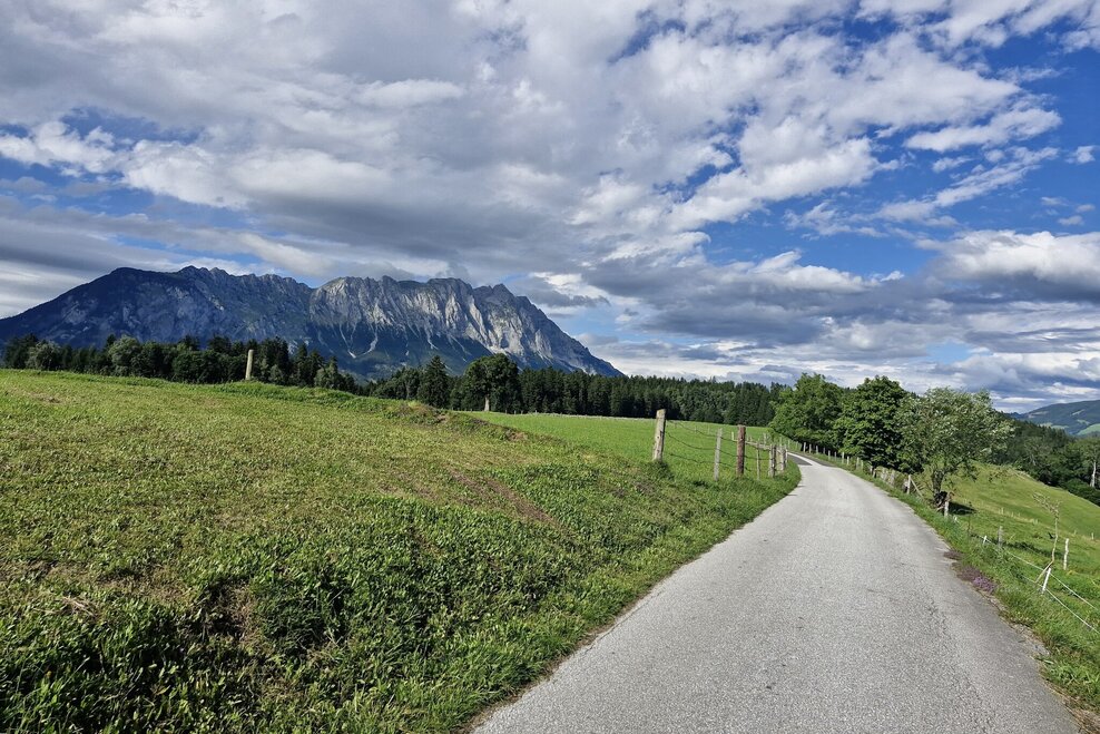 Diese entspannte Rundtour startet in Gröbming und führt dich hinauf auf den Mitterberg. Von dort geht es über die idyllischen Ortschaften Kaindorf, Matzling, Tipschern und Berg weiter nach Gersdorf, bevor du schließlich über Kaindorf wieder nach Gröbming zurückkehrst. Auf gut ausgebauten Asphaltstraßen genießt du die Ruhe verkehrsarmer Wege und das eindrucksvolle Panorama auf Stoderzinken, Kammspitze und Grimming – perfekt für alle, die einen genussvollen Tag in der Natur verbringen möchten.
