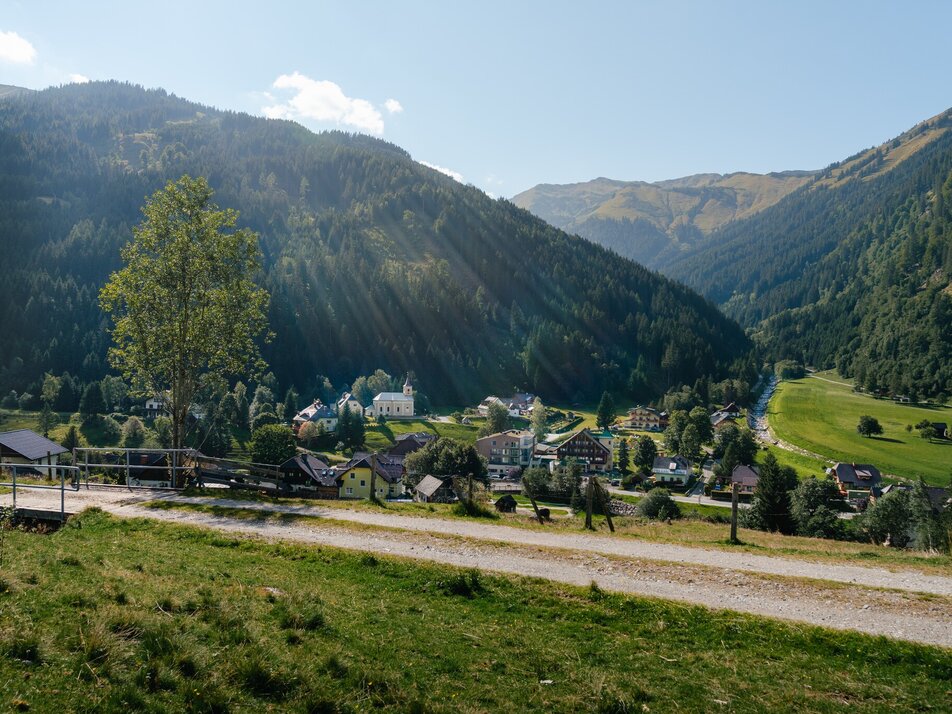 Vom Parkplatz querst du die Straße bis rüber zur Bushaltestelle. Hinter dieser führt dich der Weg hinauf zum Siedlungshaus. Entlang der Markierung geht`s querfeldein über Wald und Wiese, beim Holztürl links, rüber zum Forstweg, wo es auch schon wieder runter und nach der Brücke zurück in den Ort geht.