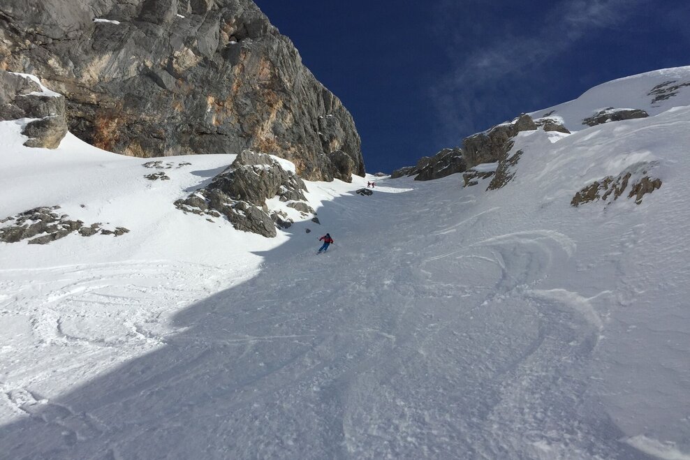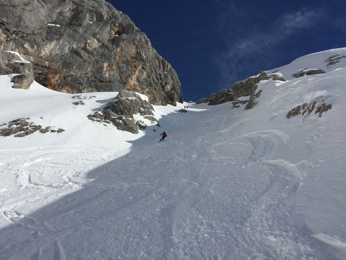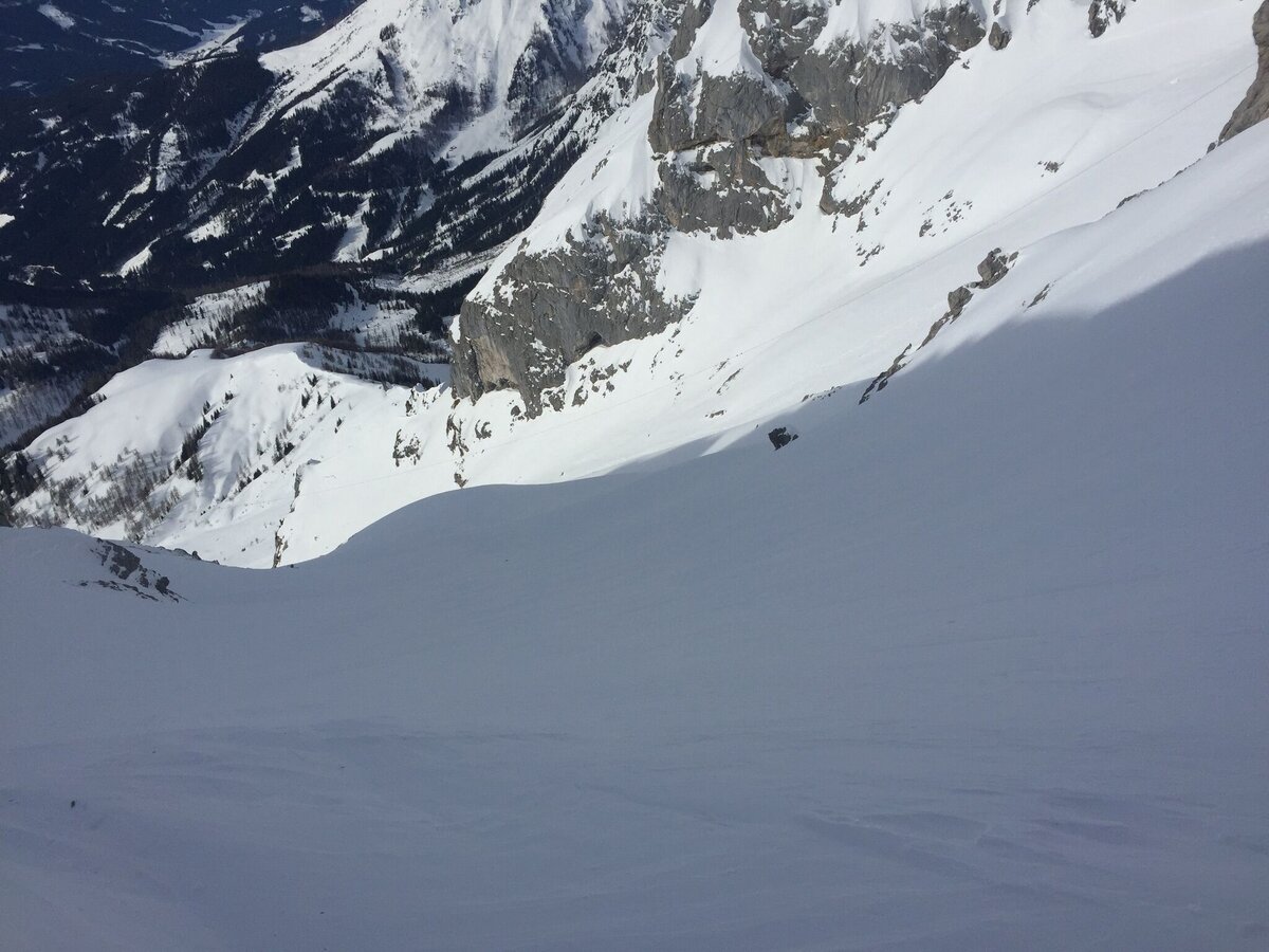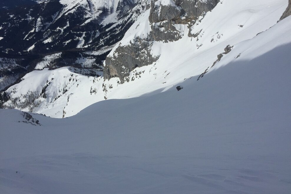 Steile Einfahrt ca. 45 Grad, weites herrliches Kar direkt unter der Dachsteingondel.