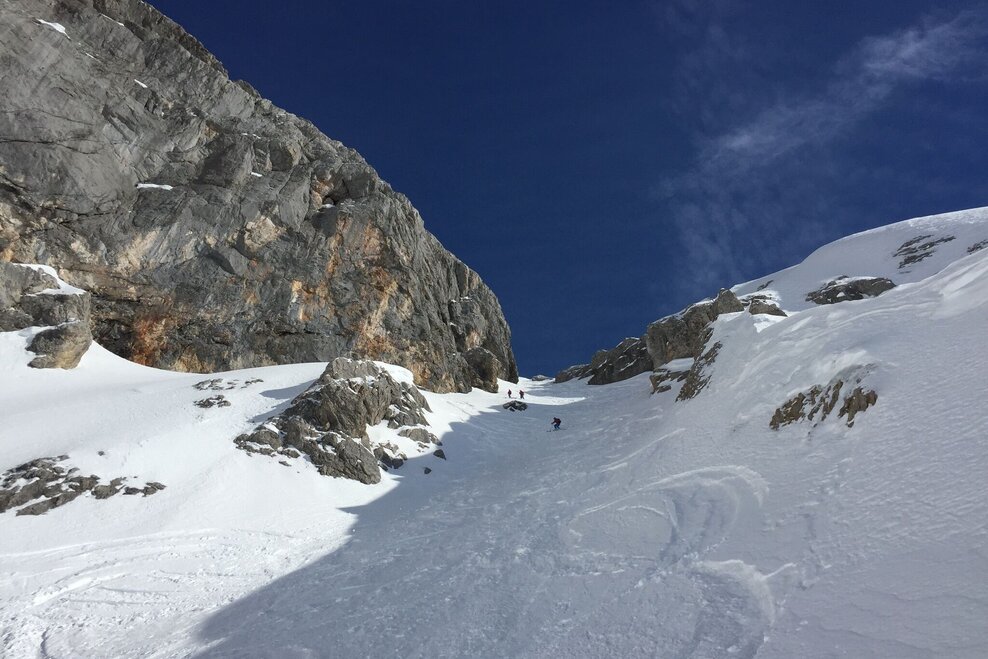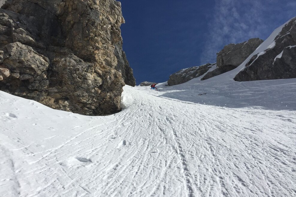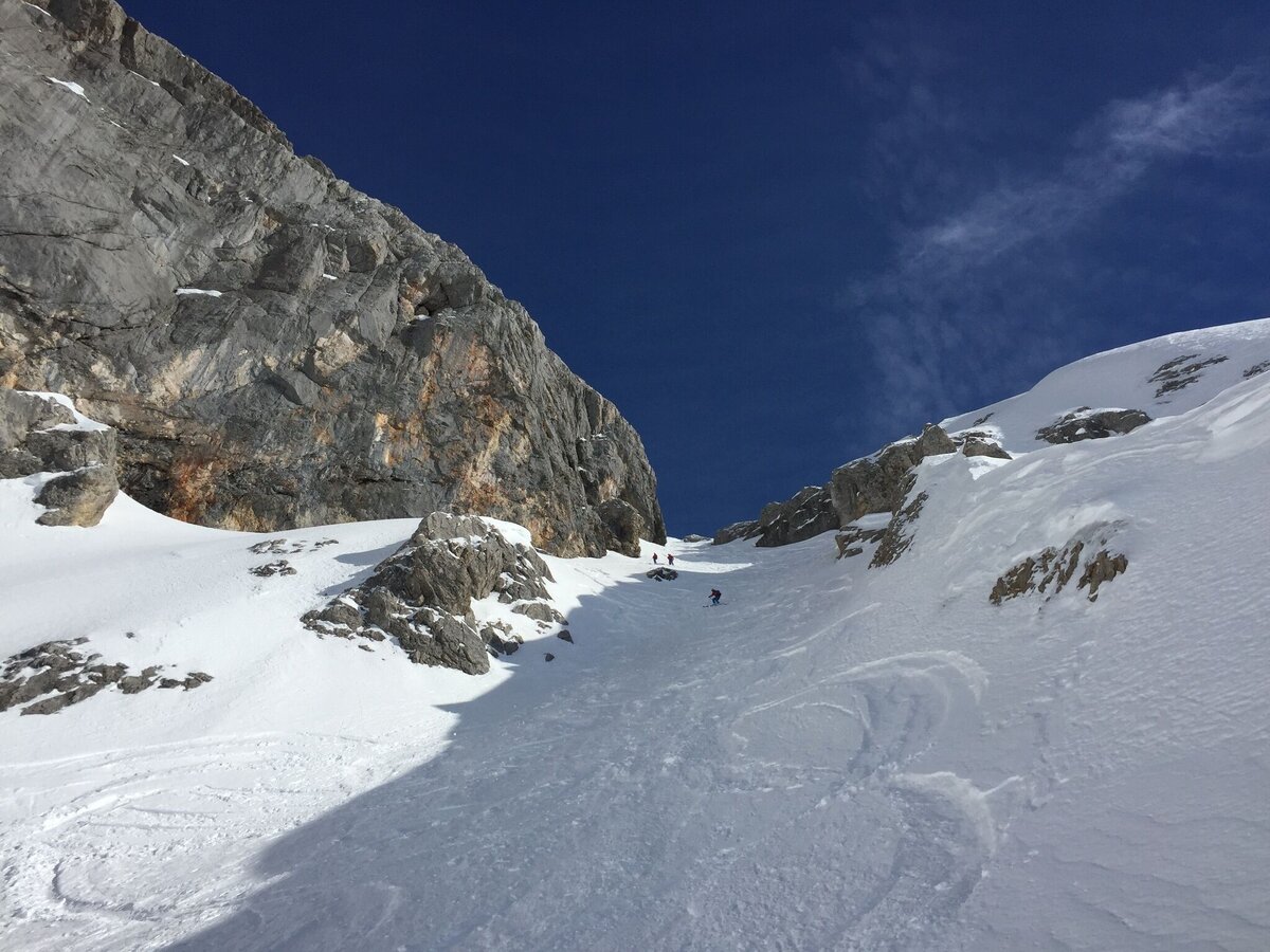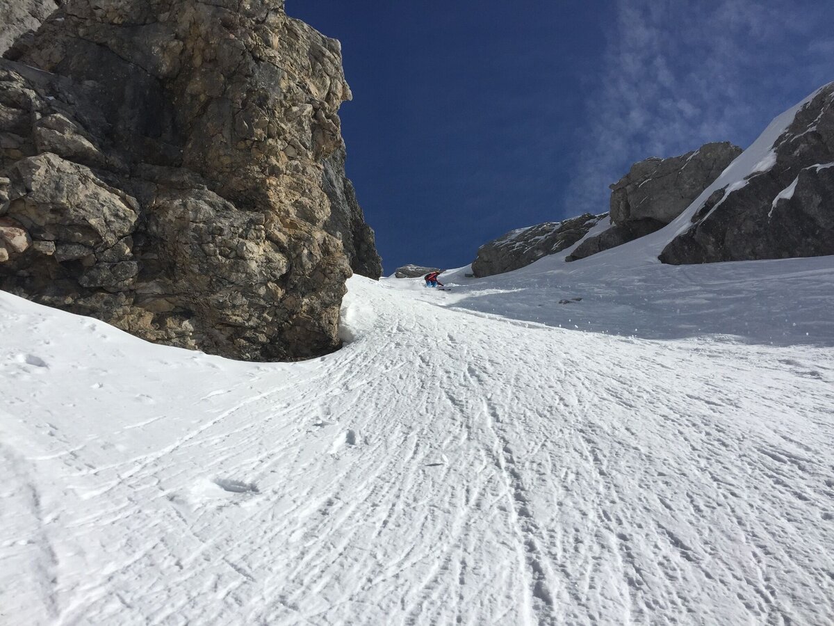 Steile Einfahrt ca. 45 Grad, weites herrliches Kar direkt unter der Dachsteingondel.