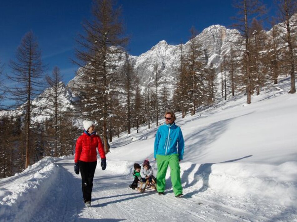 Im Anstieg zunächst schöne freie Wiesenflächen bis Gasthof Edelbrunn, dann Waldpassagen, freies Gelände in der Almregion. Traditionsreiche Hütten Dachsteinhaus, Brandalm, Austriahütte, Walcheralm oder Glösalm verführen zur Einkehr. Herrliche Aussicht auf die schneebedeckten Berge der Tauern und in die Dachstein Südwänd.