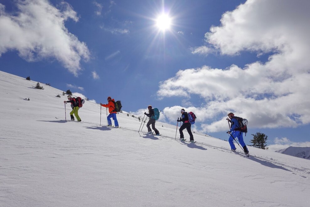 - Unternimm keine Skitour allein. Gemeinsam macht’s ohnehin mehr Spaß!