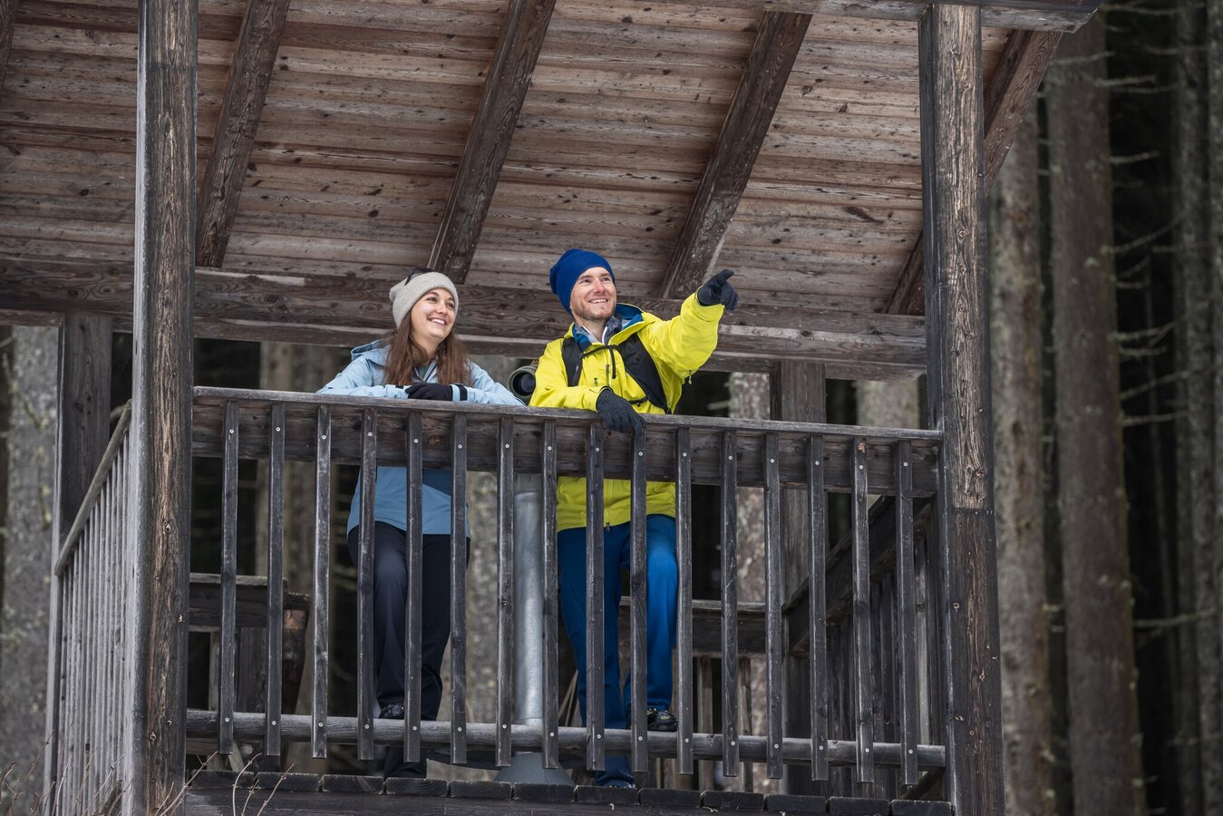 Vom Gasthof Tetter folgst Du der Beschilderung taleinwärts entlang des Themenweges Wilde Wasser. Der Begleitweg der Untertalstraße wird vom Loipengerät für Fußgänger präpariert. Schon nach wenigen Metern erreichst Du ein erstes Highlight - den Aussichtsstadl Tettermoor. Hier bietet sich ein herrlicher Blick über das winterlich verschneite Moor. Weiter taleinwärts geht es am Ausichtsturm vorbei durch den Wald zur Waldhäuslalm (TIPP: hier kannst Du Eisstockschießen). Direkt nach der Waldhäuslalm zweigst Du rechts ab, querst die Brücke über den Untertalbach und wanderst auf dem geräumten Forstweg weiter zur Sondl-Alm. Entlang des Weges hast Du hier immer wieder einen wunderbaren Blick auf die Loipen, die entlang des Untertalbaches ebenfalls zur Sondl-Alm führen.