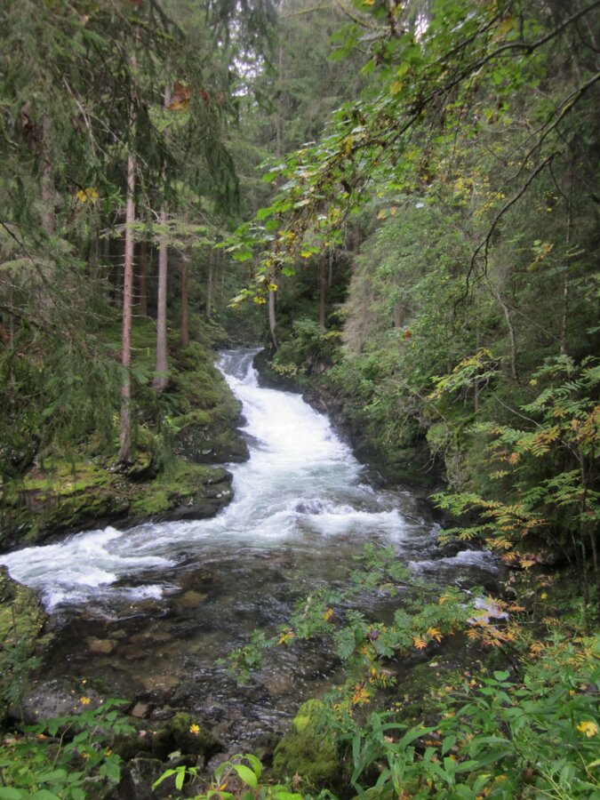 Ein besonders empfehlenswerter, wenn auch anstrengender Alpinstein durch die Schlucht "Wilde Wasser". Trotz der teils hohen Stufen und steilen Treppen hat diese Wanderung unserer fast 8-jährigen Tochter einen riesen Spass gemacht. Oben angekommen, gab es dann auf der Gfölleralm zur Belohnung für sie Kaiserschmarrn und Wildes Wasser (Mixgetränk für Kids). Das Bild zeigt einen der mehreren kleineren und größeren "Seitenwasserfälle" die man auf dem Weg quert.