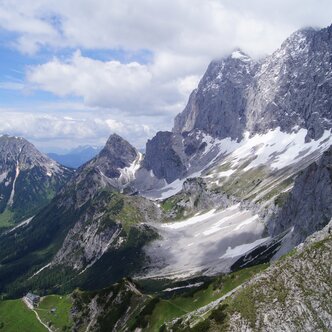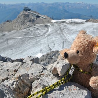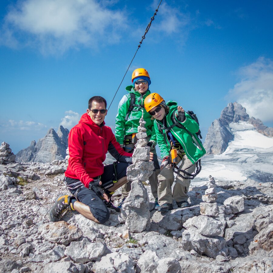 Ein großartiges Erlebnis im Sommer in den Schnee zu laufen, vor allem für Kinder. Der große Gjaidstein mag für manchen ohne Ausrüstung möglich sein, für Kinder besteht unserer Meinung nach Klettersteigset-Pflicht. Vom Gipfel hat man eine tolle Aussicht auf den Dachstein-Gletscher und die Warteschlangen auf den Hohen Dachstein ;-)