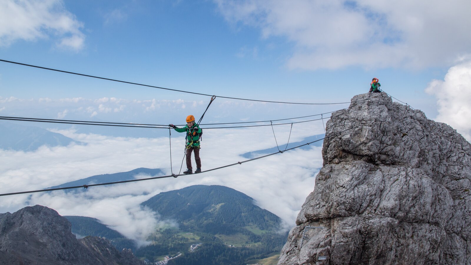 Mit und für Kinder eine recht anspruchsvolle Tour. Zwar kein hoher Schwirigkeitsgrad aber doch sehr lange. Durch die Seilbahn und den kurzen Zustieg aber auf jeden Fall eine super Gelegenheit alpine Klettersteig-Luft zu schnuppern. Die Seilbrücke kann umgangen werden aber wer will das schon ;-) Den Koppenkarsteig werden unsere Kinder jedenfalls nicht mehr vergessen.