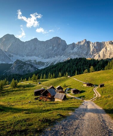 Die Almhütte ist aktuell leider nicht bewirtschaftet, kann aber mit einem Shuttlebus oder zu Fuß erreicht werden. Von dort aus kannst Du auch unterschiedliche Wanderungen in das Dachsteingebiet unternehmen, wie zum Beispiel zur Dachstein Südwandhütte. Hier bietet sich Dir ein herrlicher Panoramablick auf den Torstein und auf die Südwände des Dachsteins.