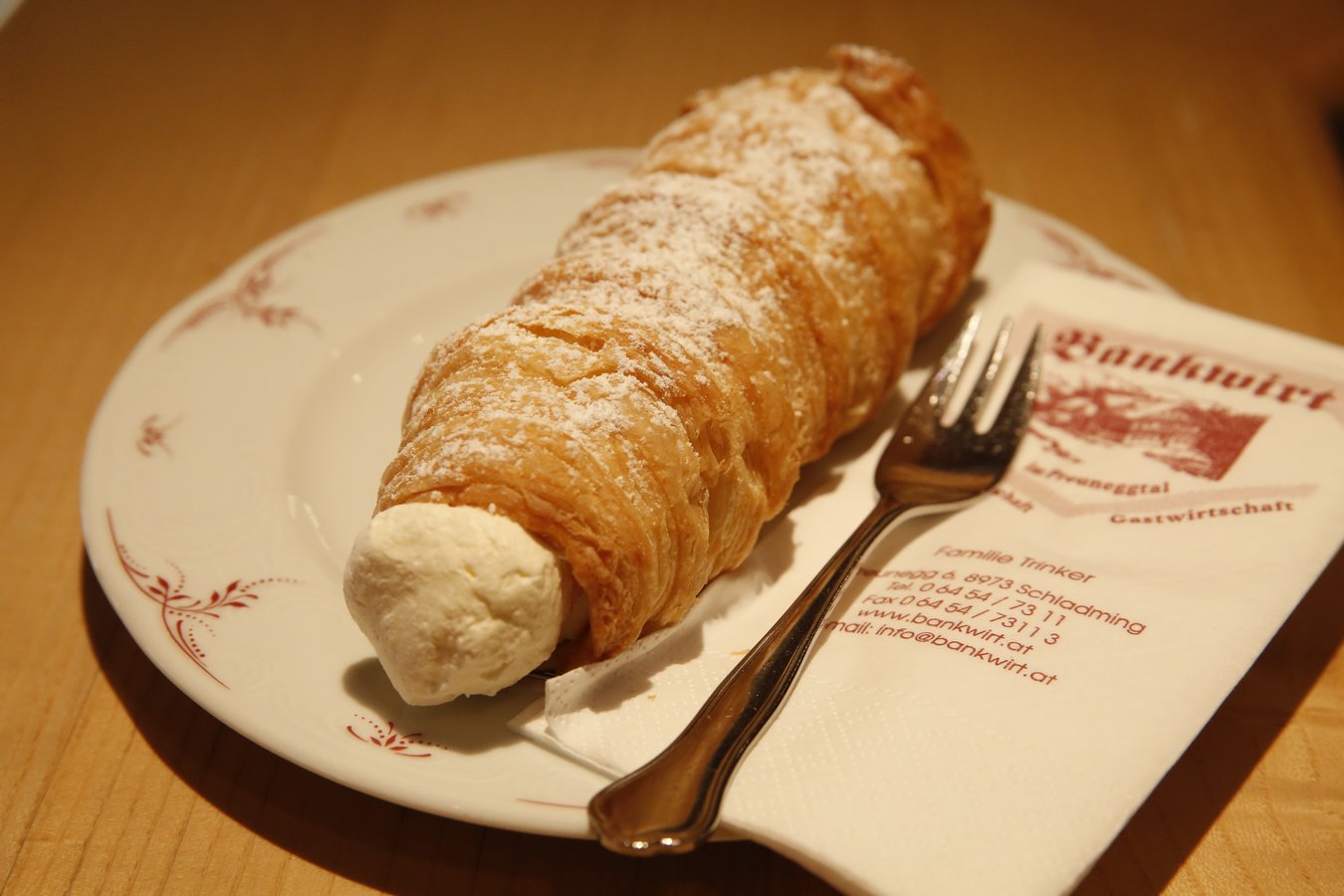 Neben der traditionell österreichischen Küche, ist der Bankwirt auch für die hausgemachten Schaumrollen bekannt.