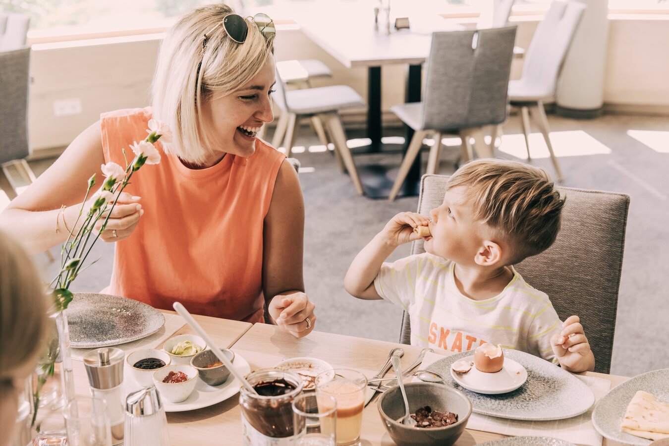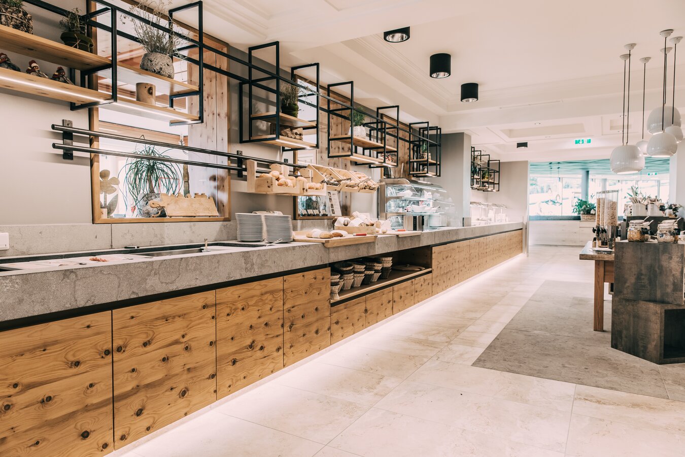 Wenn der Duft von frischem, knusprigem Gebäck in der Luft liegt, weiß man: Es ist wieder Zeit fürs Frühglücksbuffet. Herzhafte Eiergerichte frisch an der Schauküche zubereitet, eine große Auswahl an Cerealien und Marmeladenspezialitäten, süßer Plunder, feine Wurst- und Käseplatten, Joghurts, eine laktosefreie Ecke, Früchte, frisch gepresste Säfte – um nur einen kleinen Einblick zu geben.