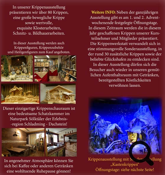 Dieser einzigartige Krippenschauraum ist eine bedeutsame Schatzkammer im Naturpark Sölktäler in der Erlebnisregion Schladming-Dachstein!
