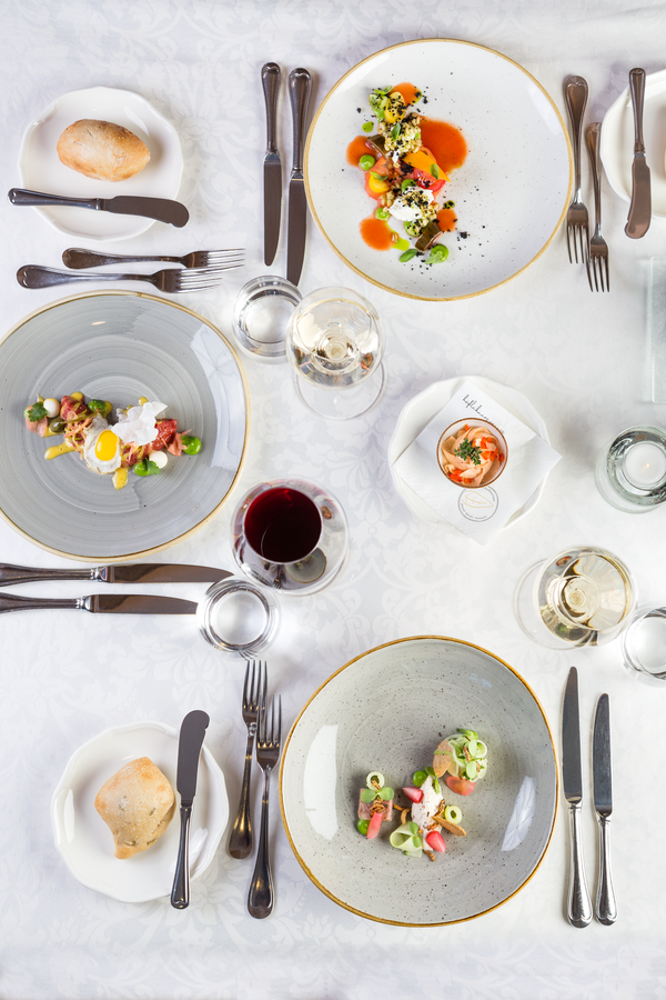 - 5-Gang Gourmet-Menü mit Auswahlmöglichkeiten von 3 verschiedenen Hauptgängen, inklusive Salatbuffet