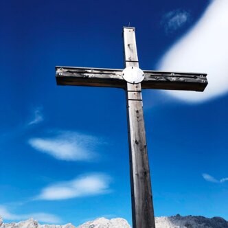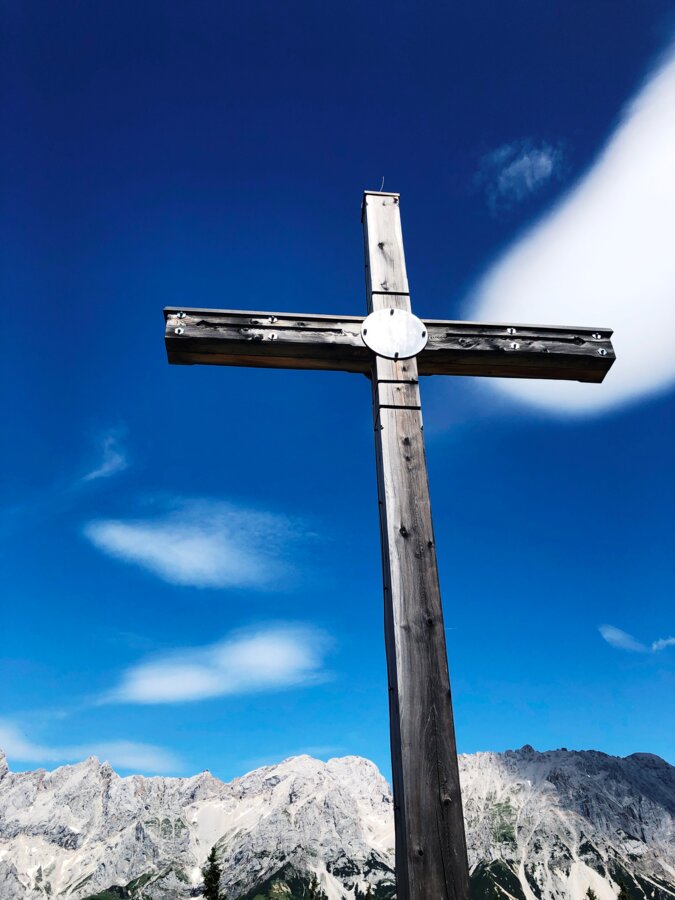 Gipfelkreuz mit tollem Ausblick vom Rittisberg auf den Dachstein.
