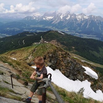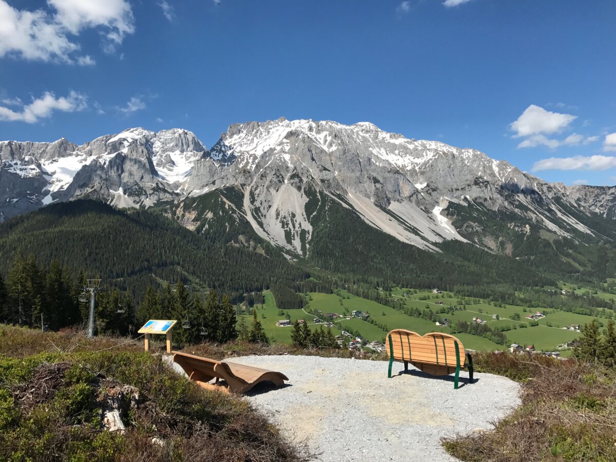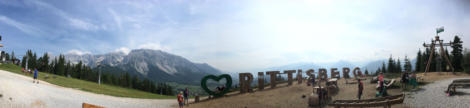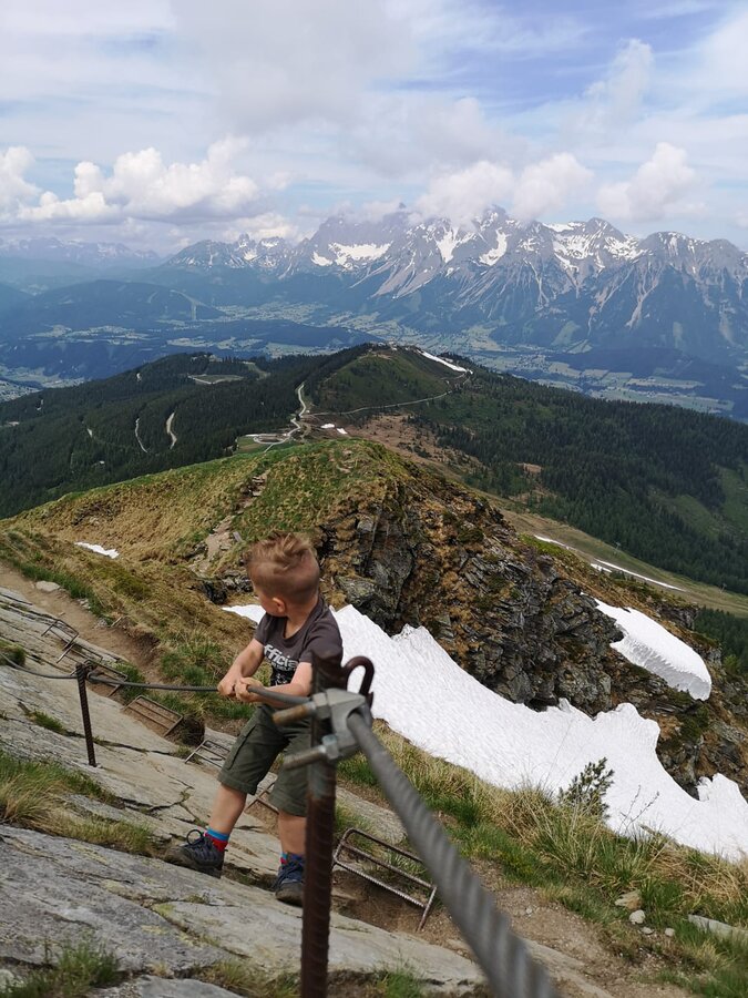Eine atemberaubende Aussicht und ein Paradies für Kinder. Wir sind einmal mit der Sesselbahn hochgefahren und das Jahr zuvor zu Fuß hochgelaufen. Dort entlang gibt es einen wirklich schönen Märchenweg mit Rätseln die auf einer Karte stehen die es beim Startpunkt gibt. Oben angelangt gibt es für die gelösten Rätsel ein kleines Geschenk im Rittisstadl für die Kinder. Wir entspannten bei einer grandiosen Aussicht und die Kinder konnten auf dem tollen Spielplatz rumtoben. Jedes Mal wenn wir in Ramsau sind, kommen wir auf den Rittisberg, weil der fast freie Rundumblick einfach traumhaft ist!