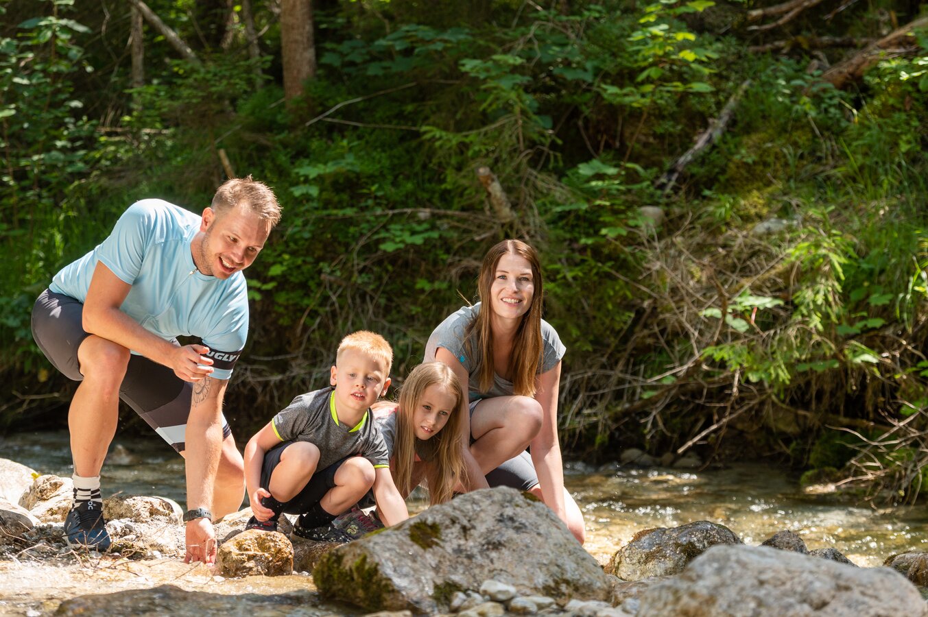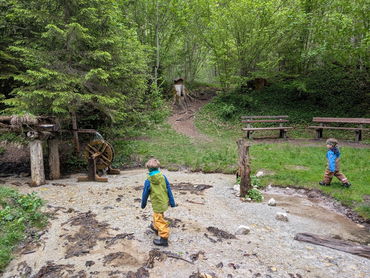 Die Wanderung ist bis zum Spielplatz und weiter bis zum Rätselpunkt 7 problemlos möglich. Allerdings muss man denselben Weg auch wieder zurückgehen, da die Brücke aufgrund eines Unwetters nicht passierbar ist. Wer den ganzen Weg nicht wieder zurücklaufen und Zeit sparen möchte, kann den Bach bei Niederwasser auch barfuß überqueren – Schuhe ausziehen nicht vergessen! 😉