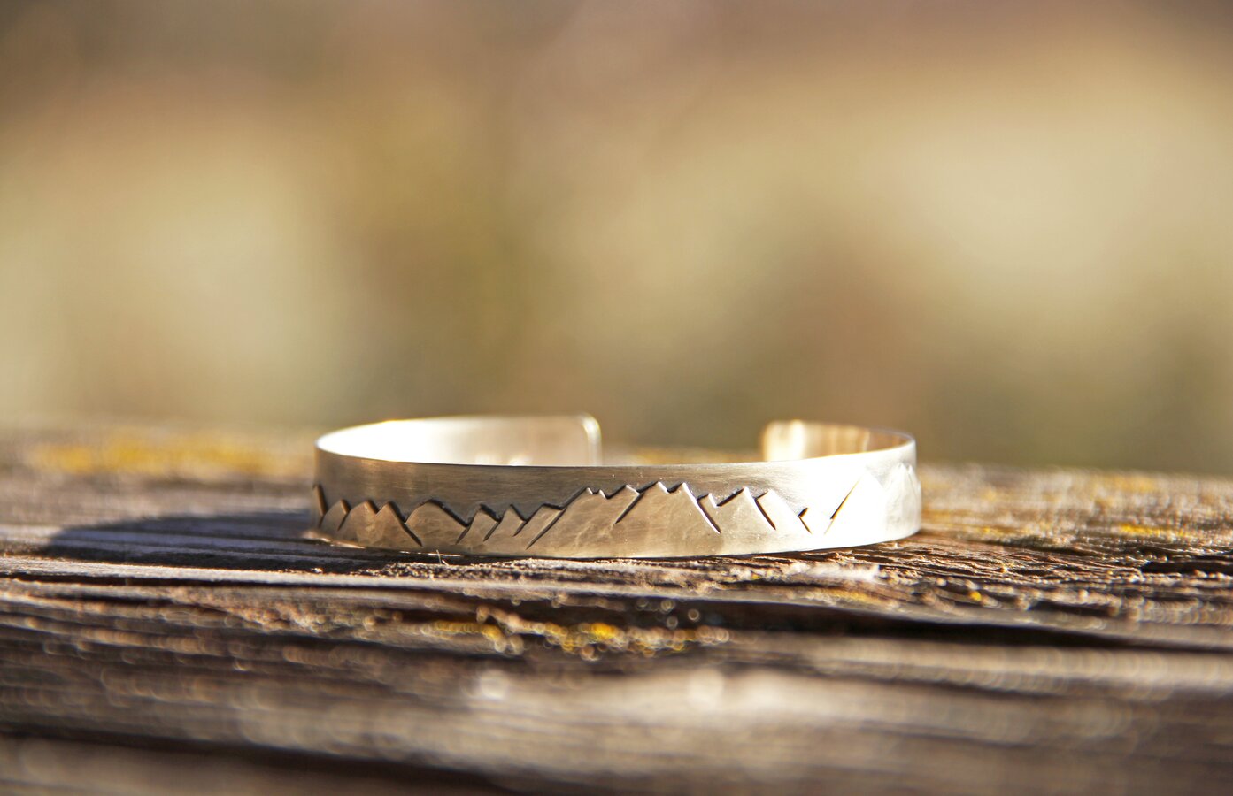 Ich fertige Bergschmuck mit Silhouetten von heimischen Gipfeln wie meine Dachstein-Ketten, Grimming-Armbänder oder die Gesäuse-Broschen.