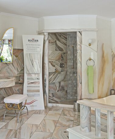 Von den alten Griechen als „Stein der Götter“ bezeichnet, bringt die Bezeichnung die Ehrfurcht vor seiner Schönheit zum Ausdruck. Die Farbnuancierung von Weiß über Rosé bis Grün und Grau, die immer ein bisschen anders ausfällt, macht jedes Stück aus Sölker Marmor zu einem Unikat.