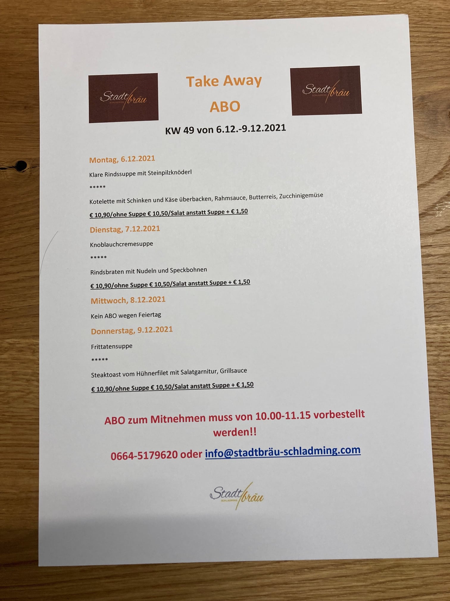 Anfragen für Gruppen bitte an info@stadtbräu-schladming.com oder info@kulinarwerk.com