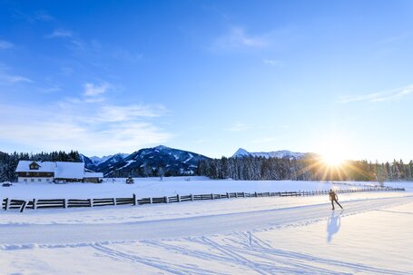 Neben Ramsau am Dachstein gibt es für Langlauf-Begeisterte auch in den anderen Orten der Region viel zu entdecken. Die „Tälerloipen“ reichen in ihrer Schwierigkeit von der gemütlichen Genuss-Tour bis hin zum echten Geheimtipp für Ambitionierte und runden das Langlauf-Angebot in Schladming-Dachstein ideal ab. Besonders eindrucksvoll ist die Kristallloipe im Untertal, die am kristallklaren Wasser des Untertalbaches entlangführt und 2023 mit dem steirischen Loipengütesiegel ausgezeichnet wurde. Wenn die Wetterverhältnisse im Hochwinter mitspielen, bilden sich dort mitunter Eiskristalle in der Größe von mehreren Zentimetern. Sehr idyllisch geht es hingegen auf der Spechtensee-Loipe zu, die rund um einen einsam gelegenen Moorsee bei Wörschachwald führt. Wer nach Ruhe und Erholung beim Langlaufen sucht, ist aber auch auf den Langlaufloipen in Donnersbachwald bestens aufgehoben.
