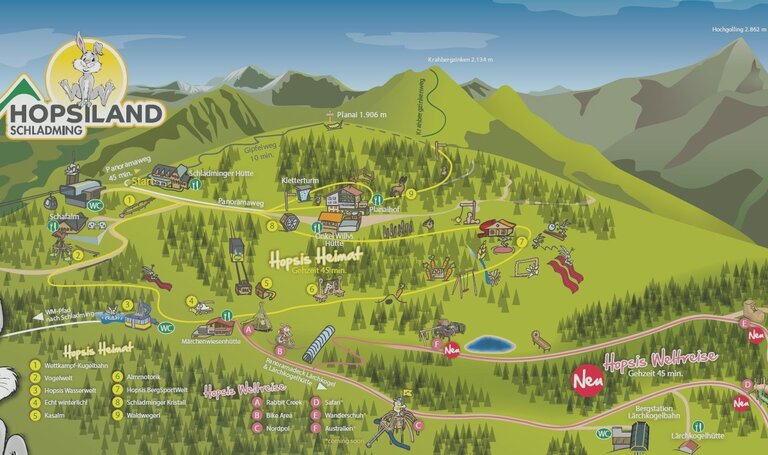 - Spielstationen wie Kugelbahn, Rutschen und vieles mehr im Hopsiland Planai