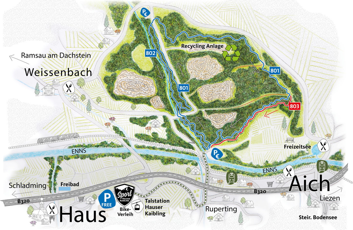 Der Singletrack Haus-Aich eignet sich hervorragend für Kinder und Traileinsteiger. Durch die besonders umweltschonende Errichtung der Trails und die schmalen Radwege ergeben sich abwechslungsreiche Streckenverläufe durch den Wald. Drei verschiedene Loops garantieren Spaß und ein besonderes Fahrerlebnis für alle Altersgruppen. Eine Besonderheit des Singletracks ist die lange Saisondauer, die durch die sonnige Lage und den natürlichen Schotterboden ermöglicht wird.