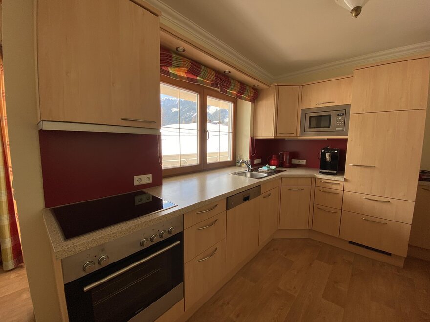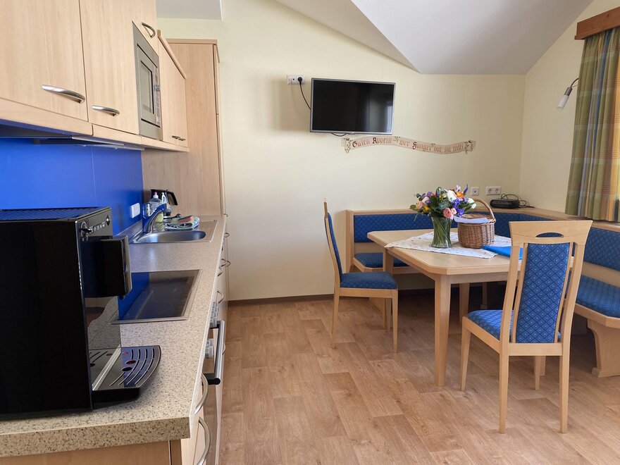 In der geräumige komplett eingerichtet Wohnküche finden Sie unteranderem auch eine Sitzcouch mit TV.