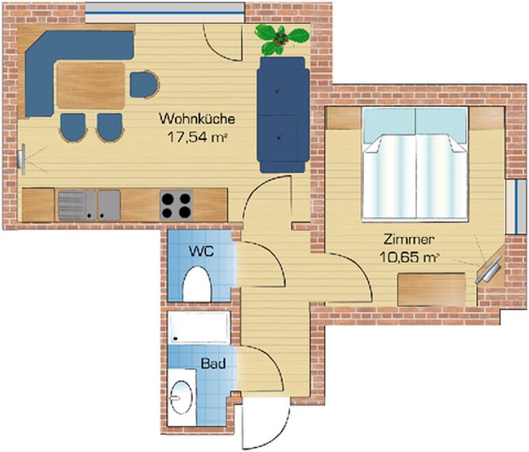 Größe 40 m² Belegung 1 - 3 Erwachsene , 0 - 2 Kinder Zimmer 2 Schlafzimmer 1 Zimmerdetails