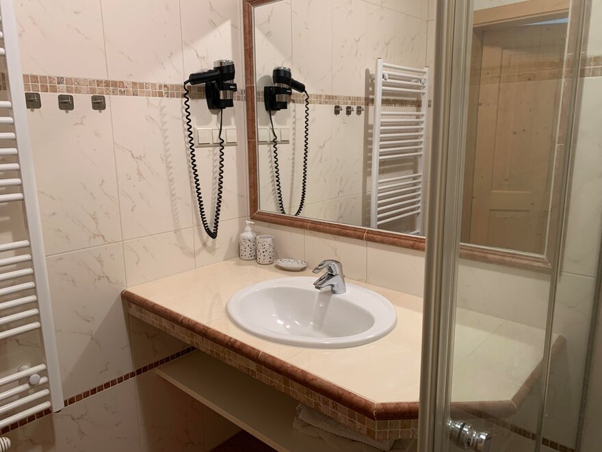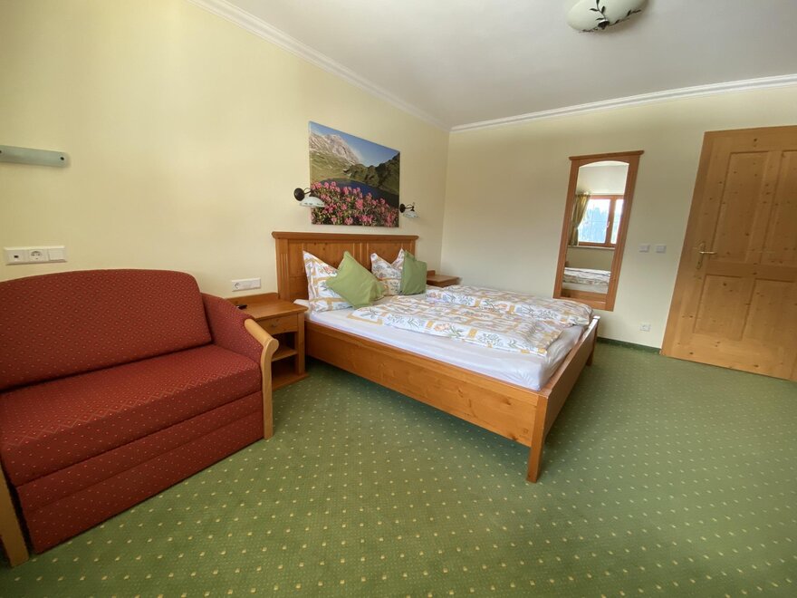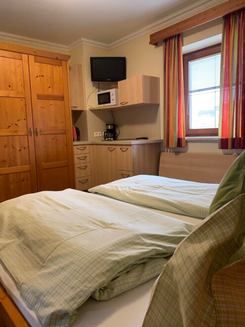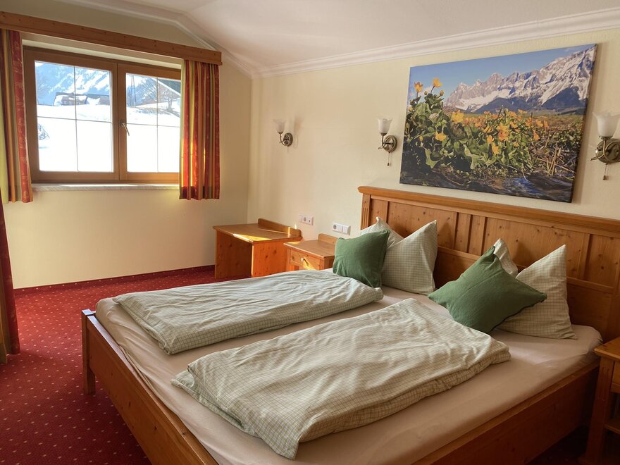 Es wird empfohlen das Doppelzimmer Edelweiss im Zusammenhang mit einem unserer Appartements zu buchen. Für das Zimmer ist KEIN Skisafe vorgesehen. Die Skier können jedoch im Skikeller abgestellt werden.