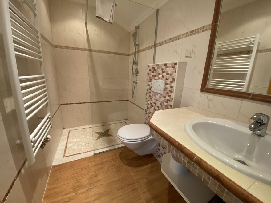 Das Appartement Alpenrose verfügt über zwei getrennte Schlafräume jeweils mit extra WC und Dusche. Die Ausziehcouch in beiden Schlafzimmern kann gerne als Kinderbett genutzt werden.