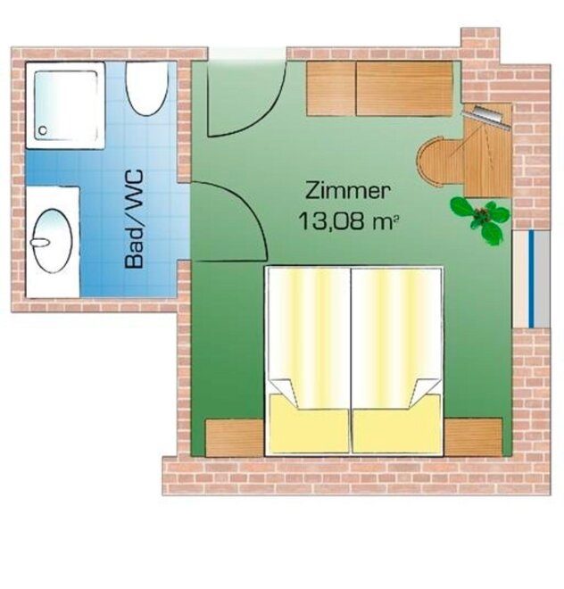 Größe 18 m² Belegung 1 - 2 Erwachsene , 0 - 1 Kinder Zimmer 1 Schlafzimmer 1 Zimmerdetails