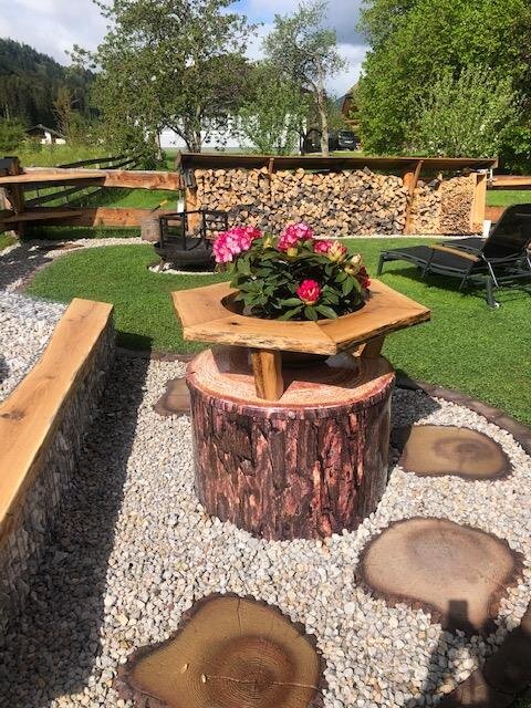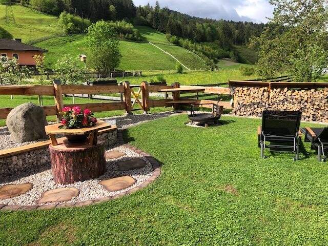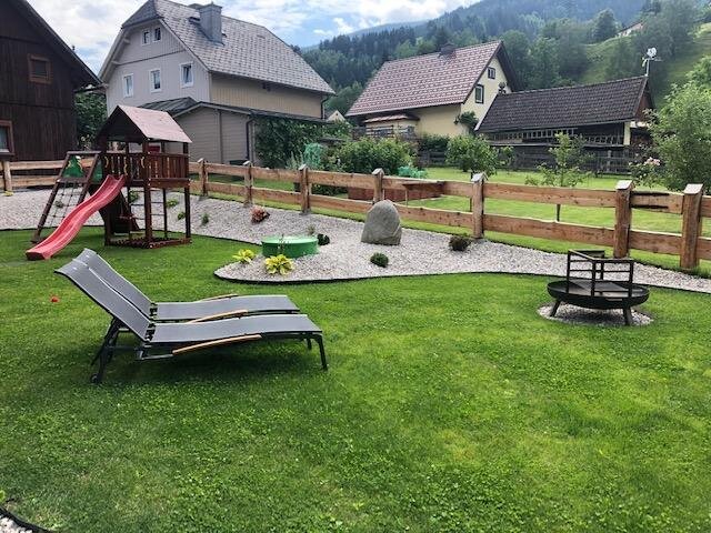 - Skiraum mit Heizung für Skischuhe, Sitzecke mit Sommerküche, Kinderspielplatz mit Schaukel, Rutsche und Klettergerüst, Garten mit Liegen, Terassen mit Gartenmöbel, Grillplatz mit offener Feuerschale, Außengrill und Gulaschkessel, Abstellplatz für Fahrräder, Laden von E-Bikes und E-Autos