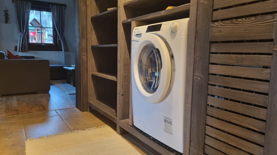 - Mikrowelle, Wasserkocher, Toaster, Induktionskochfeld, Backofen/klein/, Spülmaschine, Kaffeemaschine/Kapseln/, Kühlschrank mit Gefrierfach und Waschmaschine mit Trockner