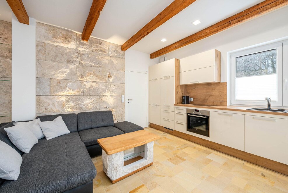 Mitten im Zentrum von Schladming gelegen, präsentiert sich das Apartment Höchstein – Stone & Light Residence als stilvolles Refugium für Gäste mit Anspruch an Design, Komfort und Lage. Hochwertige Materialien, eine markante Steinwand und durchdachte indirekte Beleuchtung schaffen eine warme, moderne Wohnatmosphäre mit alpinem Charakter.