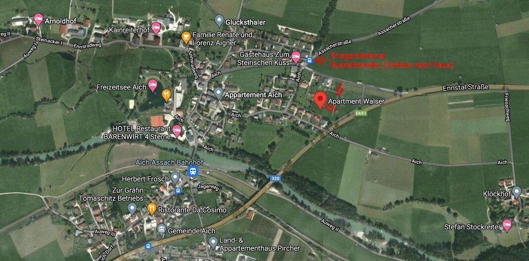 Von Graz kommend Ennstalbundesstraße B320, erste Einfahrt rechts nach dem großen Feuerwehrhaus links in die Wohnsiedlung einbiegen.