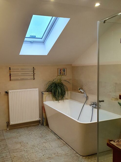 Dusche, WC, Badewanne, Doppelwaschbecken
