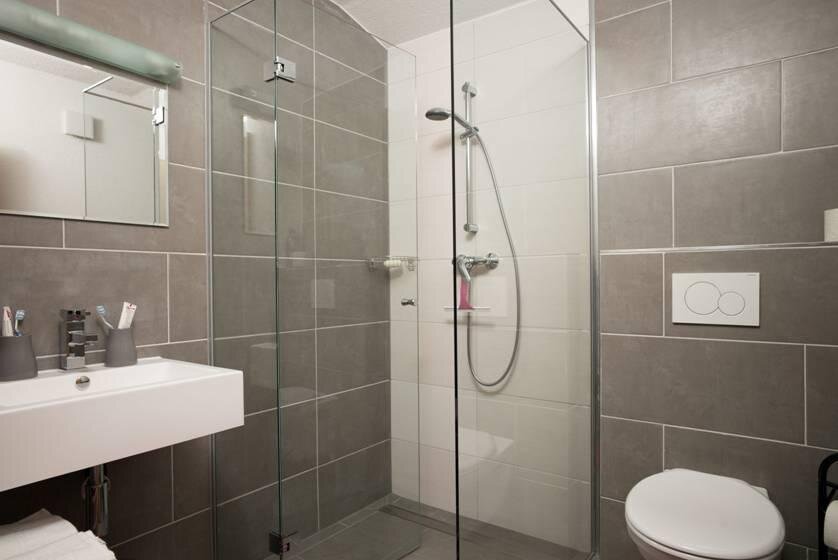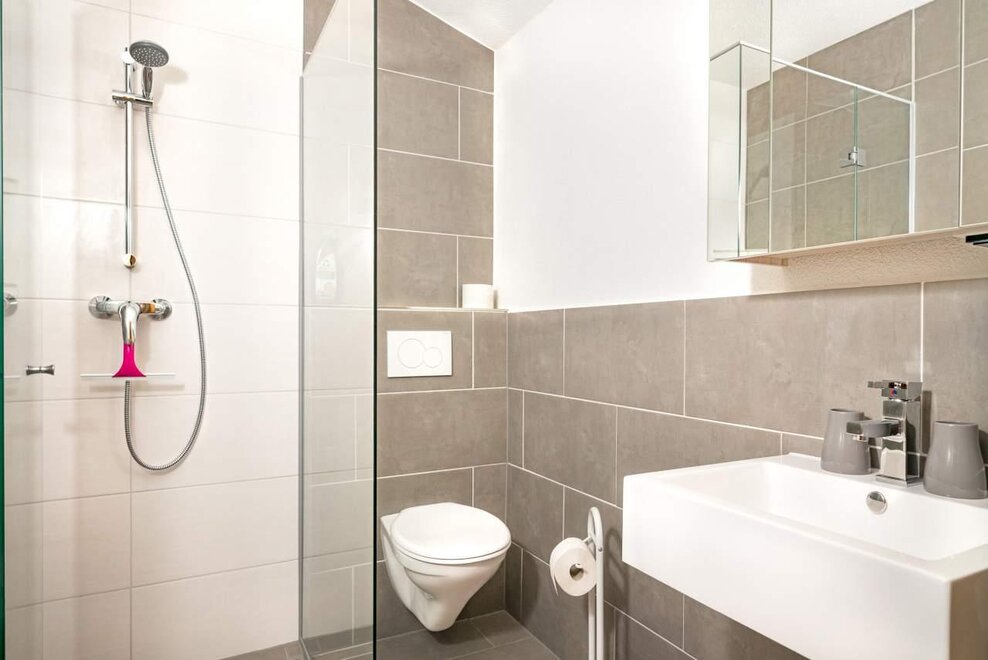 Fließendes Kalt- und Warmwasser, Dusche, WC, Waschtisch