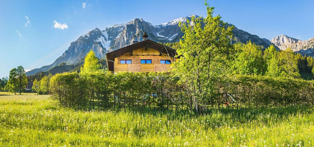 Herzlich willkommen im Appartmenthaus Lieselotte! Das im Landhausstil gehaltene Appartmenthaus Lieselotte liegt inmitten der Ramsauer Bergwiesen in herrlicher Ruhelage. Richtung Süden bietet sich Ihnen ein wunderbarer Ausblick auf die Schladminger Tauern, im Norden trohnt das Ramsau Gebirge mit seinen zahlreichen Gipfeln.