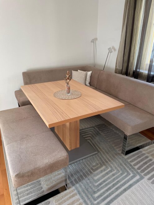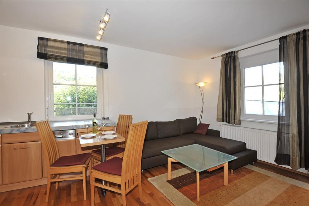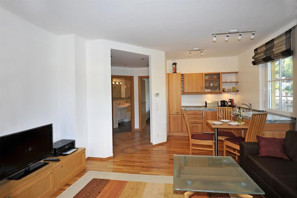 Zu den Annehmlichkeiten dieses Appartements gehören noch ein überdachter Stellplatz, ein Abstellraum für Fahrräder und Schiausrüstung ist ebenfalls vorhanden, sowie eine Waschküche mit Waschmaschine und Trockner (gegen Gebühr)Ausstattung Zimmer/Appartement