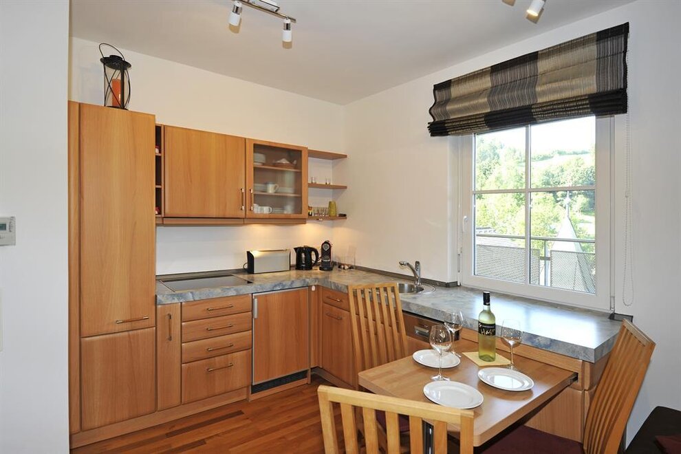 Eine komplett ausgestattete Küche steht zur Verfügung. Es gibt einen Wasserkocher, Toaster, Herd, jedoch kein Backrohr, ebenso eine Nespressomaschine, bitte Kapseln mitnehmen. Ein Geschirrspüler ist vorhanden, Tabs stehen zur Verfügung, bitte schalten Sie diesen ein bevor Sie abreisen.