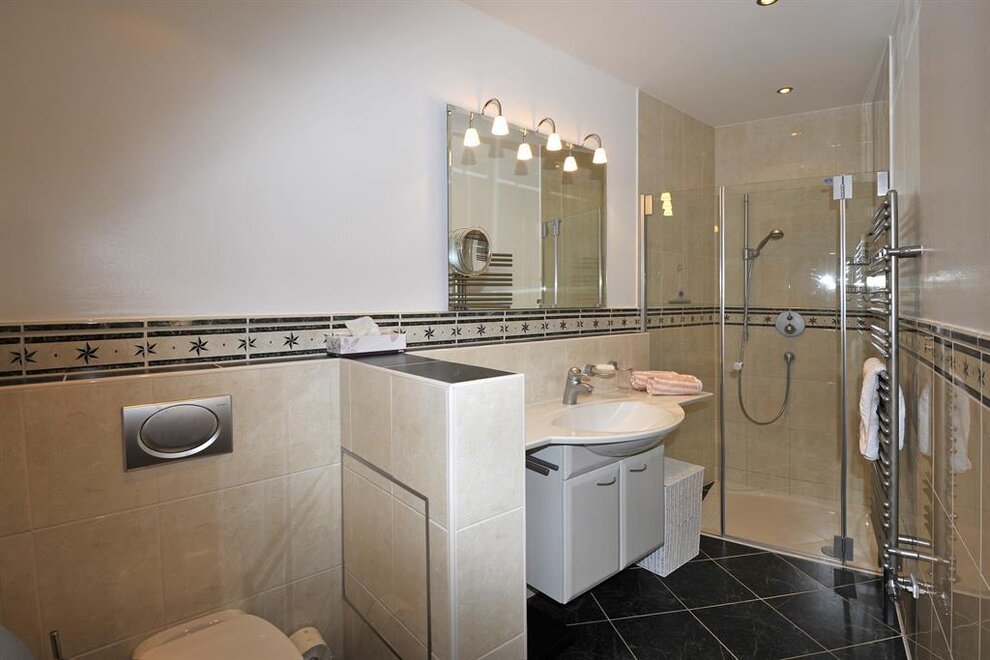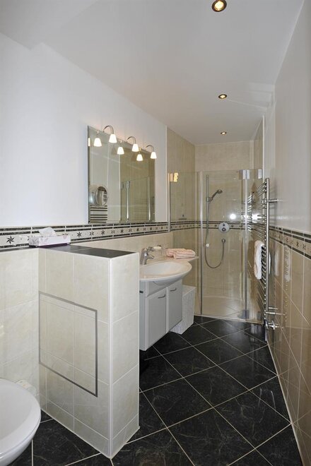 Fließendes Kalt- und Warmwasser, Waschtisch, Dusche, WC