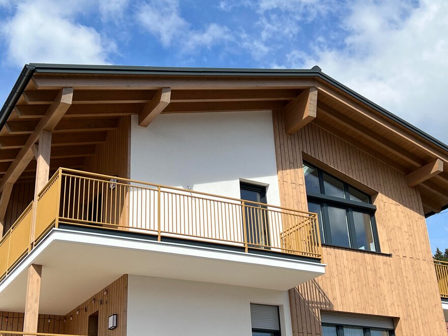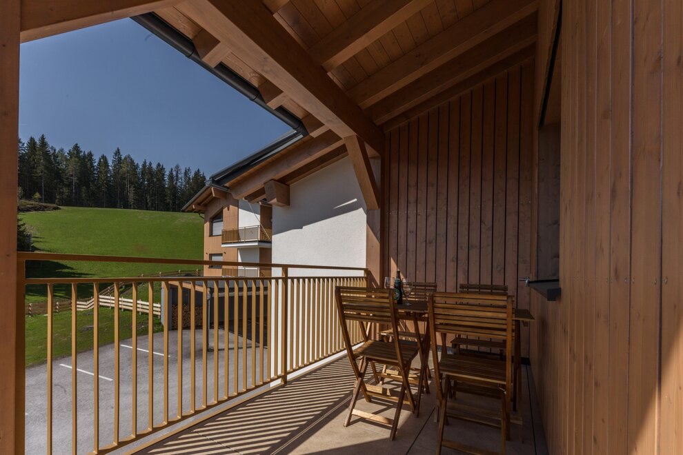Die sonnige Ferienwohnung mit zwei großen überdachten Balkonen und einer großen überdachten Terrasse befindet sich im gesamten ersten Stock des Hauses.