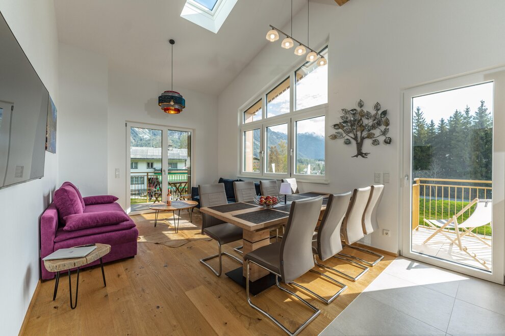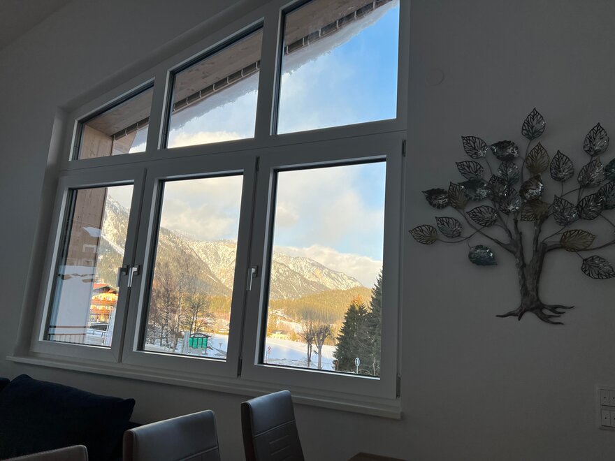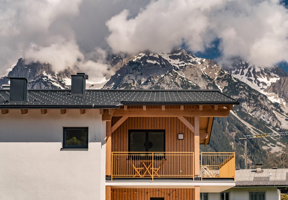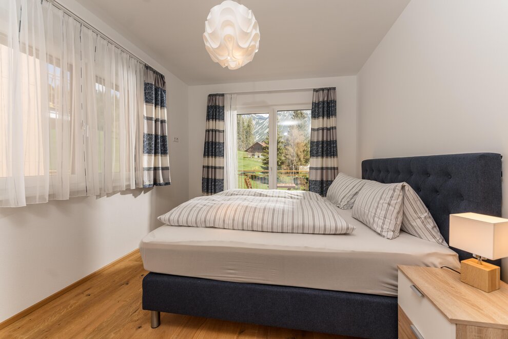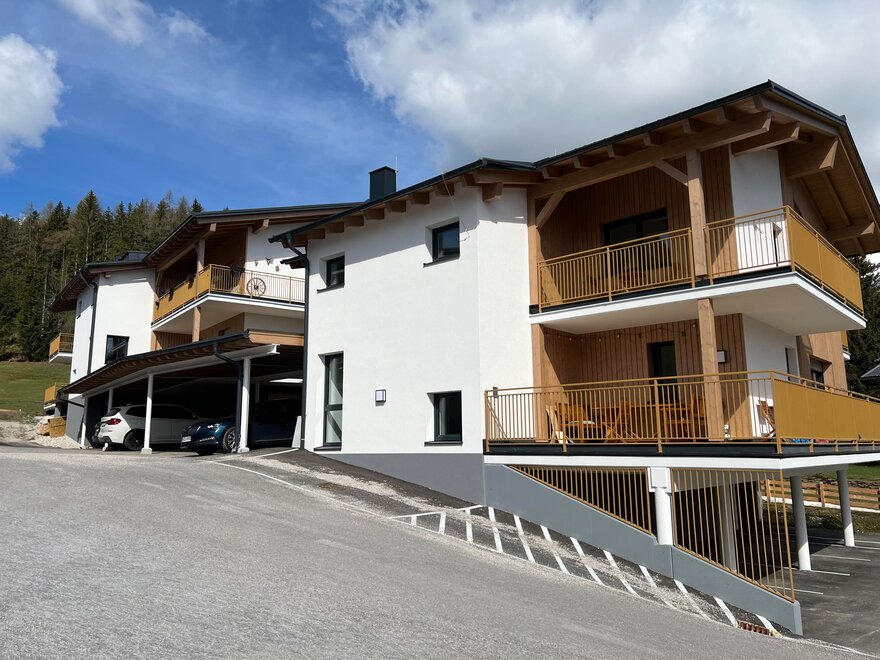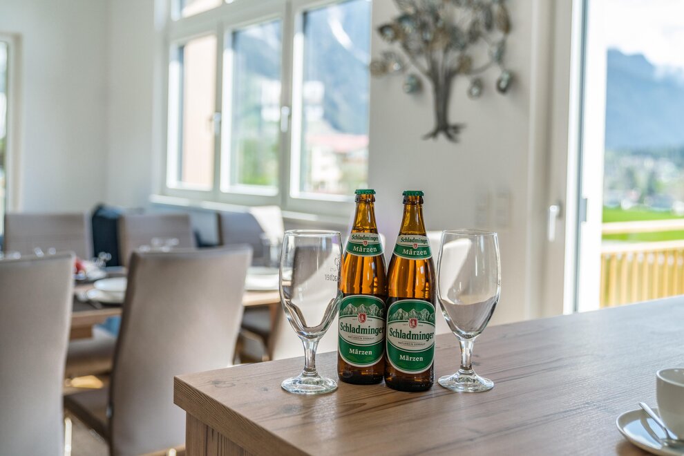 Wollen Sie Ihren Morgenkaffee mit Blick auf die Dachstein schlürfen und am Abend ein Glas Wein auf der Terrasse genießen, lassen Sie sich von unserem neu erbauten, jedem Bedarf entsprechenden Appartement Alpengefühl herzlich begrüßen. Mit 3 Schlafzimmern mit Doppelbetten, einem Panorama-Wohnbereich mit ausziehbaren Sofas, Essbereich und gut ausgestatteter Küche (Kochinsel, Geschirrspüler, Kühlschrank, Mikrowelle, Toaster, Kaffeegerät), sowie zwei Badezimmern mit WC und einer weiteren Toilette bieten wir auf 100 m2 eine komfortable Unterkunft für 8 Personen. Das Appartement verfügt über einen Flachbild-Kabelfernsehen und WLAN. Zwei Carports stehen unseren Gästen zur Verfügung. Ski- und Wanderausrüstung sowie Skianzüge können in einem eigenen Raum im Untergeschoss (direkter Zugang zu den Parkstellen) untergebracht werden. Handtücher und Bettwäsche werden gestellt.