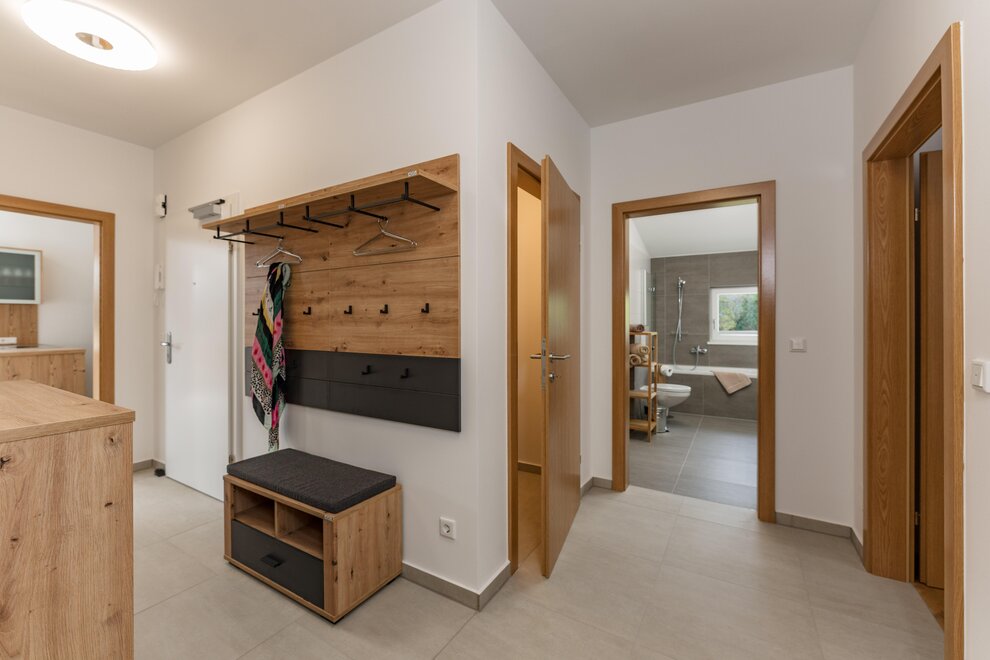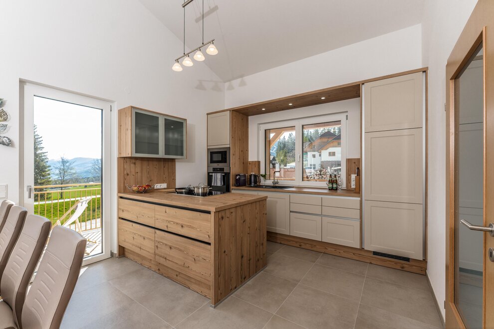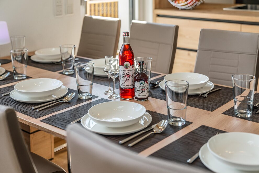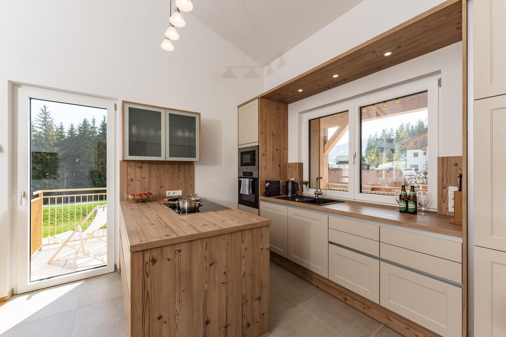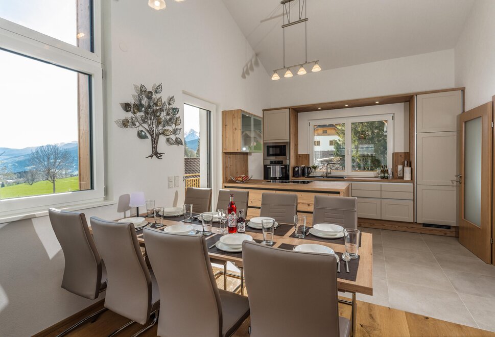 Wollen Sie Ihren Morgenkaffee mit Blick auf die Dachstein schlürfen und am Abend ein Glas Wein auf der Terrasse genießen, lassen Sie sich von unserem neu erbauten, jedem Bedarf entsprechenden Appartement Alpengefühl herzlich begrüßen. Mit 3 Schlafzimmern mit Doppelbetten, einem Panorama-Wohnbereich mit ausziehbaren Sofas, Essbereich und gut ausgestatteter Küche (Kochinsel, Geschirrspüler, Kühlschrank, Mikrowelle, Toaster, Kaffeegerät), sowie zwei Badezimmern mit WC und einer weiteren Toilette bieten wir auf 100 m2 eine komfortable Unterkunft für 8 Personen. Das Appartement verfügt über einen Flachbild-Kabelfernsehen und WLAN. Zwei Carports stehen unseren Gästen zur Verfügung. Ski- und Wanderausrüstung sowie Skianzüge können in einem eigenen Raum im Untergeschoss (direkter Zugang zu den Parkstellen) untergebracht werden. Handtücher und Bettwäsche werden gestellt.