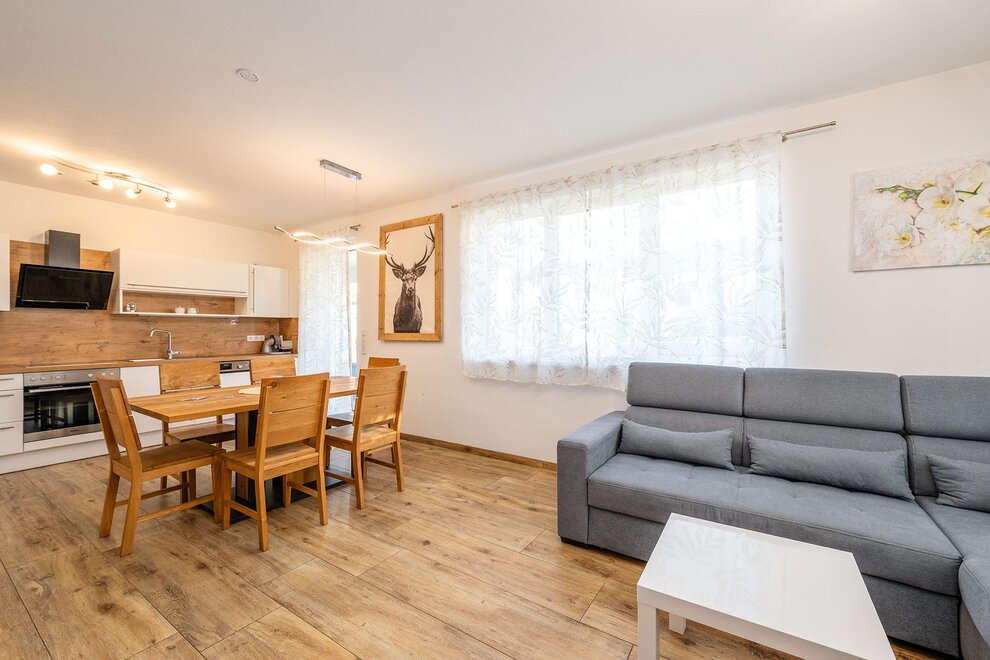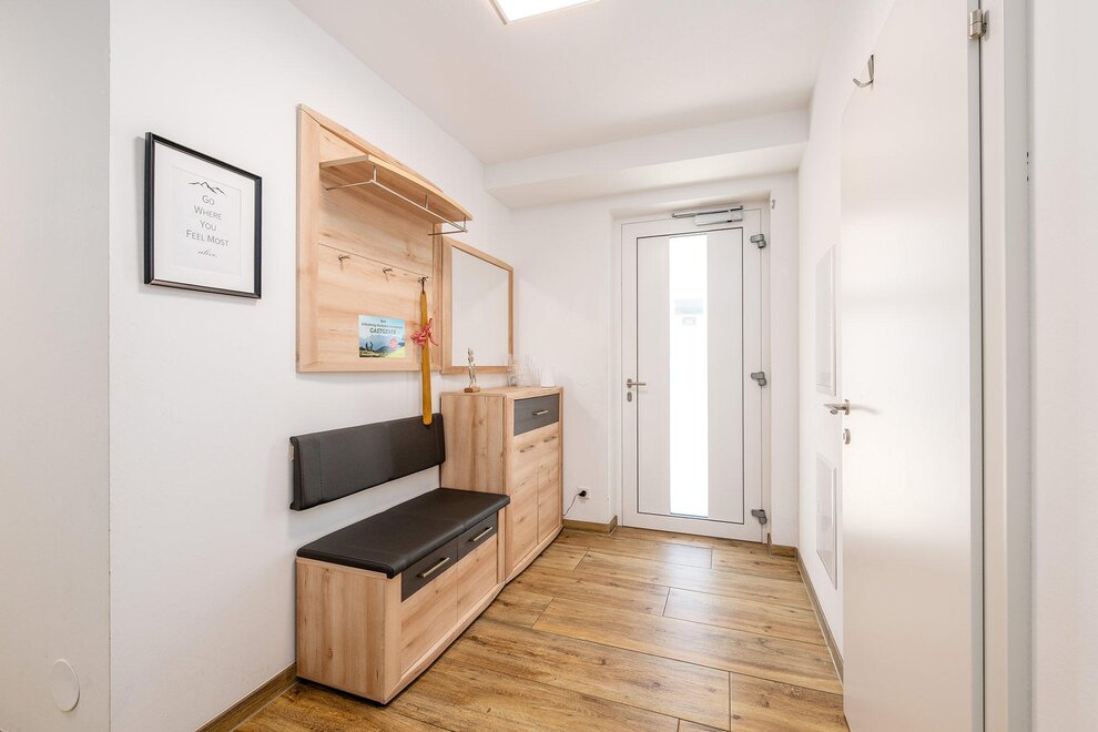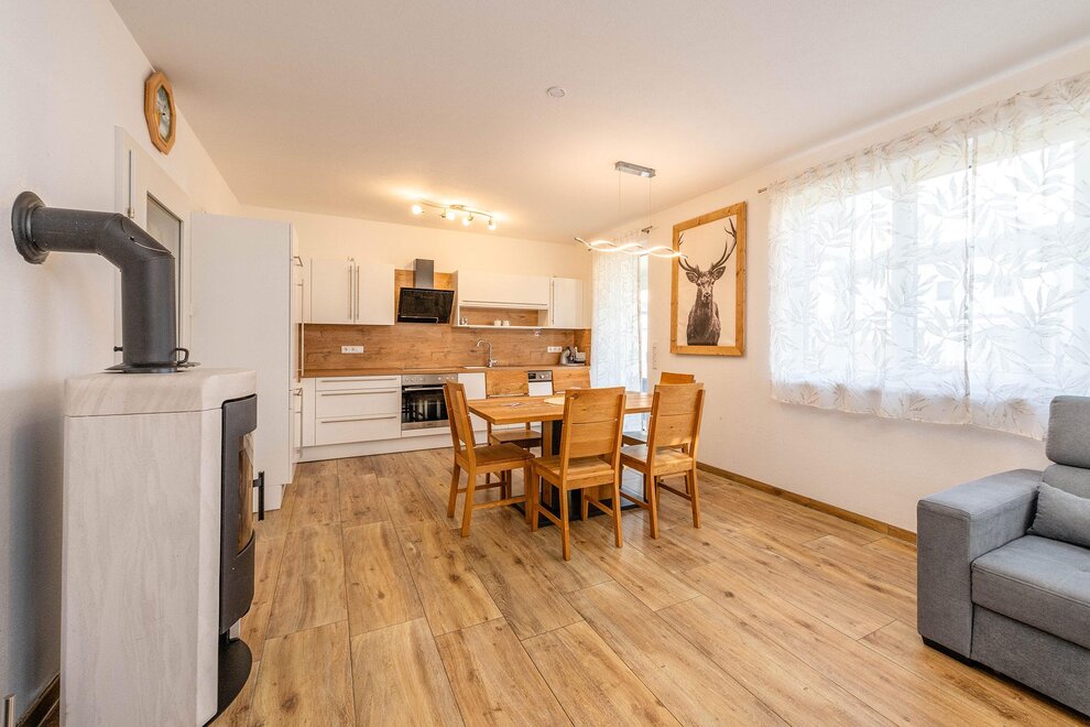 Die voll ausgestattete Küche, der helle Wohn- und Essbereich und der private Eingang mit zwei Carport-Stellplätzen sorgen für Komfort, während Haustiere im Apartment herzlich willkommen sind. Ein eigener Skiraum, WLAN und die ruhige Lage in einem gepflegten Wohngebiet machen den Aufenthalt besonders angenehm.