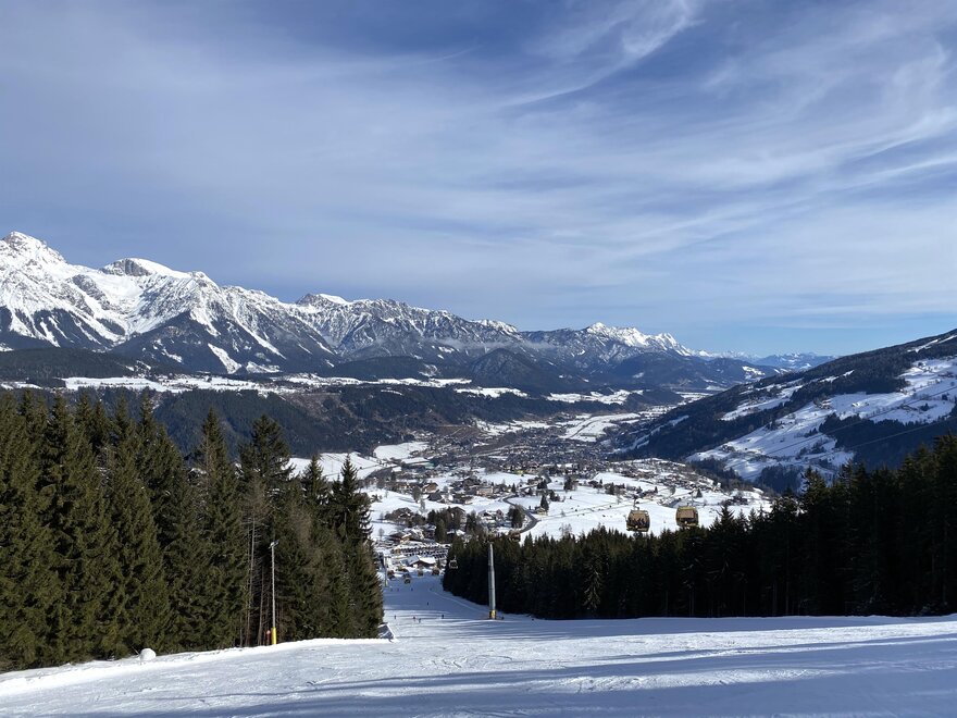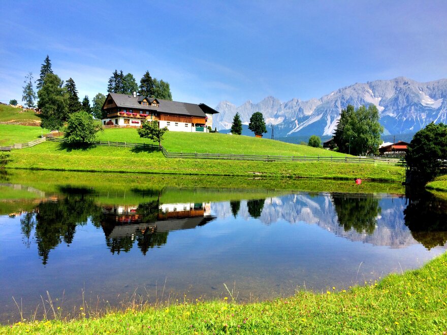 Wir vermieten ein gemütliches, sonniges Appartement für 4 Personen in einem Einfamilienhaus in absoluter Ruhelage am Rohrmooser Sonnenplateau. Zu den Pisten der Hochwurzen ist es im Winter nur ein kurzer Fußweg - wenn die Schneebedingungen stimmen, kann man bis vor die Haustür fahren. Im Sommer ist man in zwei Minuten an einem erfrischenden Badeteich und kann auch von hier aus viele Wanderungen starten. Vom Appartement hat man eine wunderschöne Aussicht über das Ennstal und Morgensonne. Im Winter können Sie mit den Skiern bis direkt vor die Haustür fahren. Die Unterkunft liegt nur 200 m vom Skilift "Obertalbahn" auf der Hochwurzen in Rohrmoos entfernt. Alternativ können Sie auch in zwei Gehminuten den Skibus erreichen. Im Sommer finden Sie bei uns den idealen Ausgangspunkt für Wander- und Mountainbike-Ausflüge, zum Beispiel zu den Touren der „Wilden Wasser“ oder den Klafferkessel.